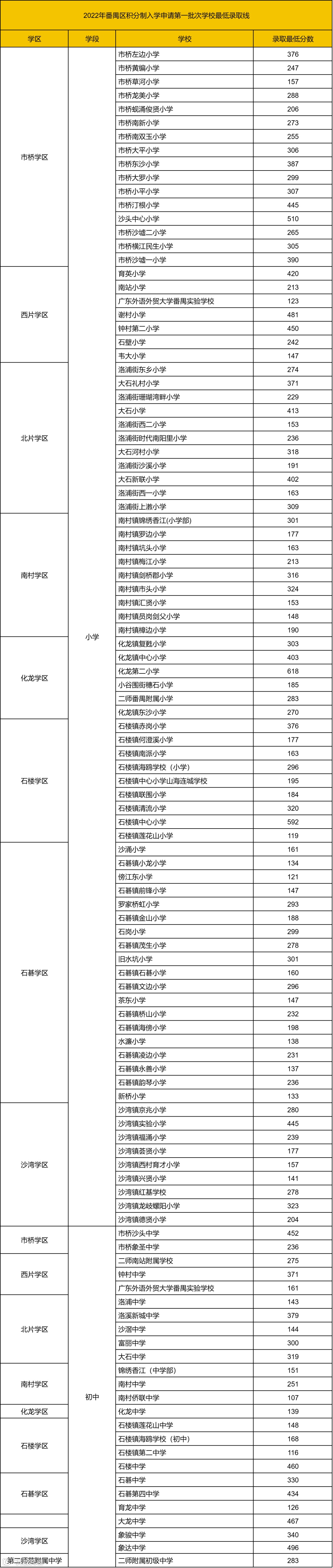 另外,越秀区的积分入学不用自己报志愿,区教育局统一安排学位。