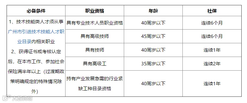 ①具有专业技术人员职业资格,年龄在40周岁以下,获得证书后,应在广州市就业、在省或广州市社保经办机构连续缴纳社保满6个月;