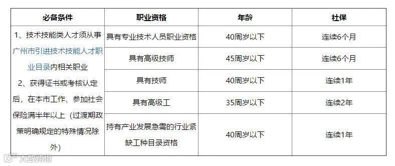 ①具有专业技术人员职业资格,年龄在40周岁以下,获得证书后,应在广州市就业、在省或广州市社保经办机构连续缴纳社保满6个月;