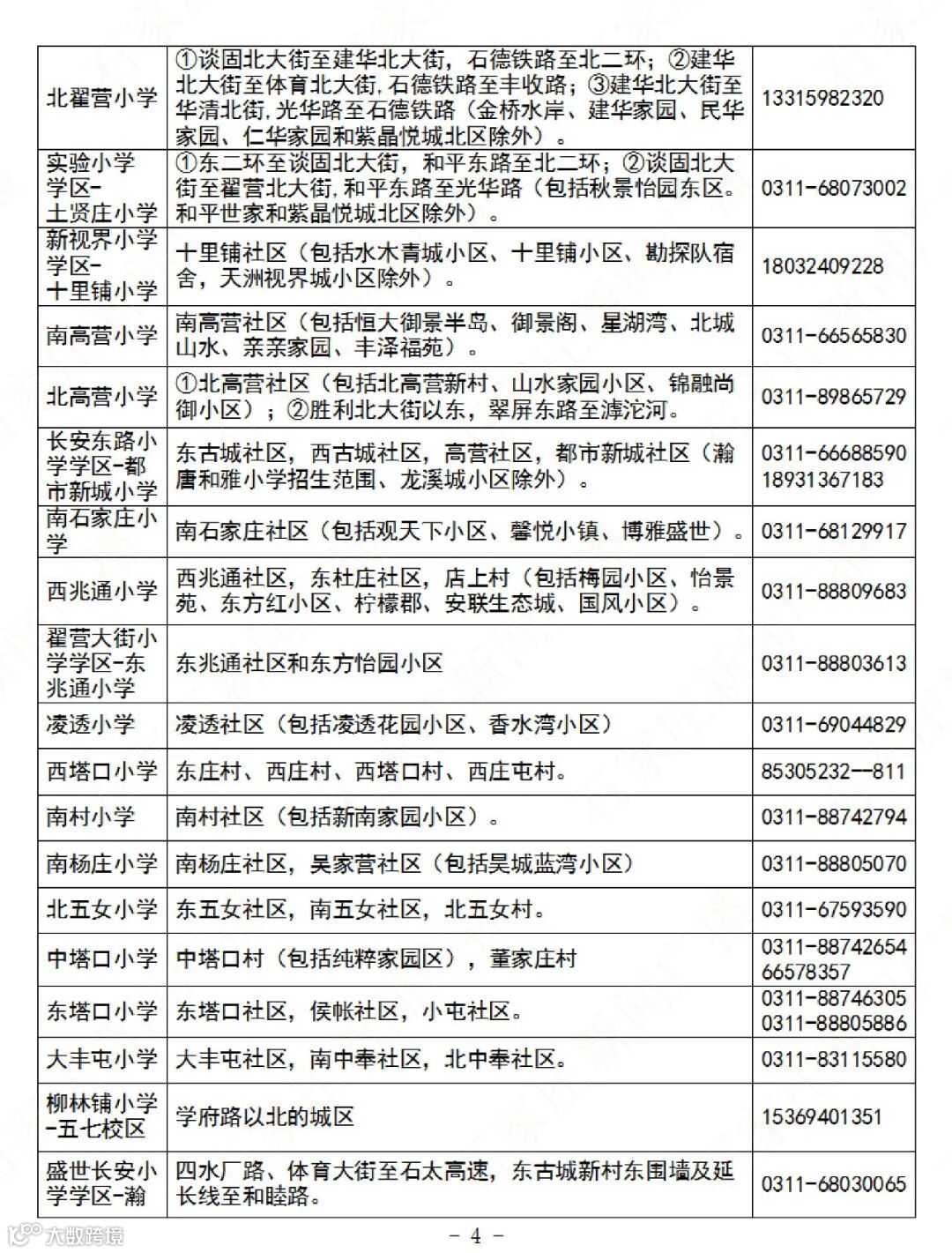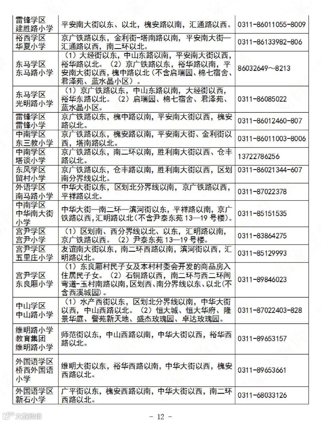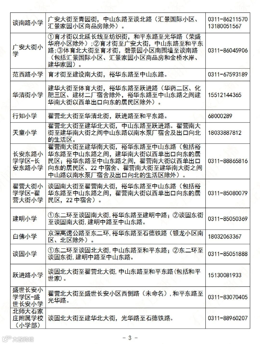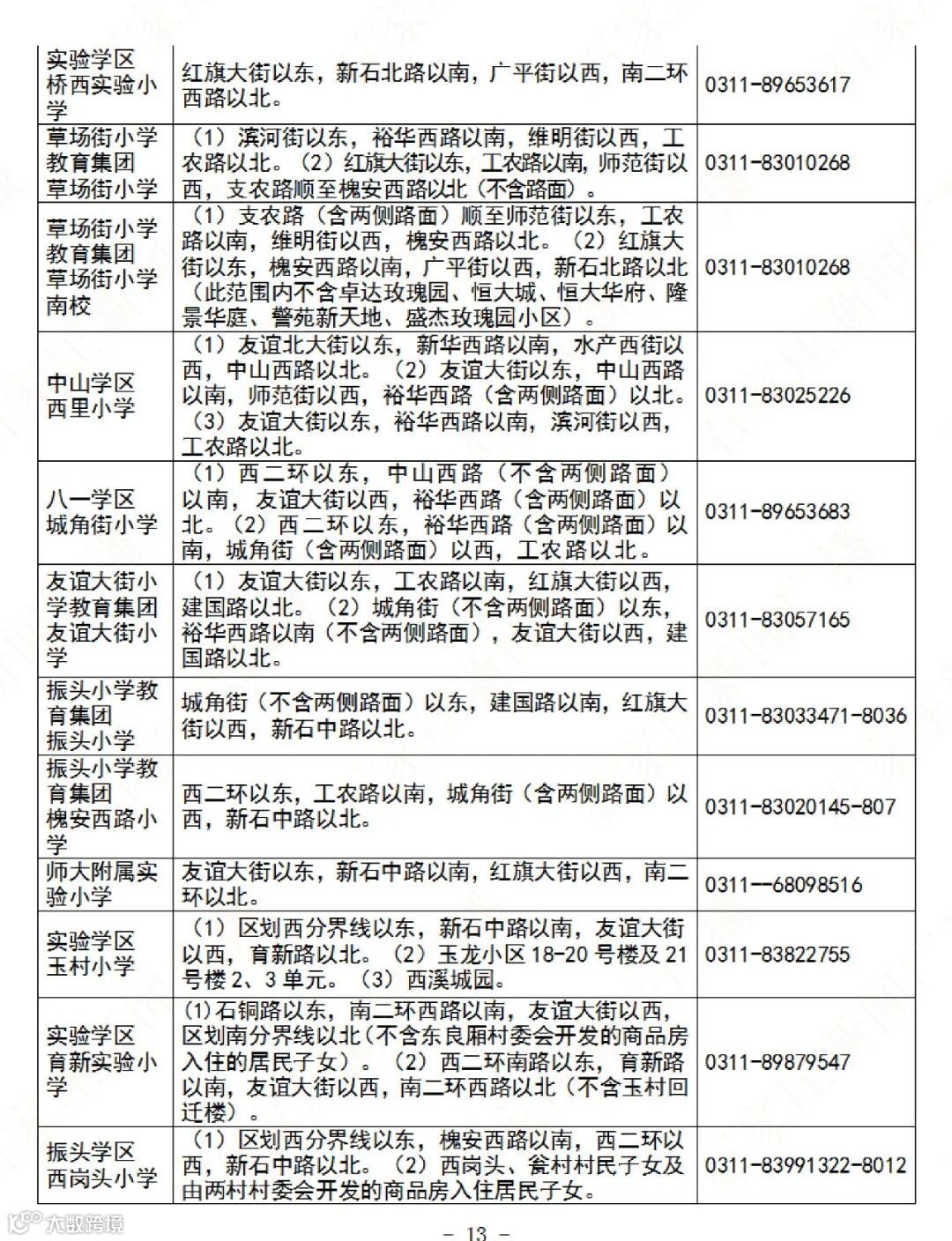 石家庄公办义务教育阶段学校招生地图及咨询电话→