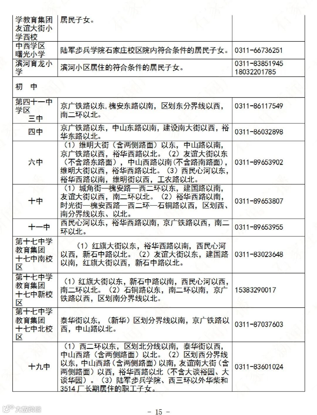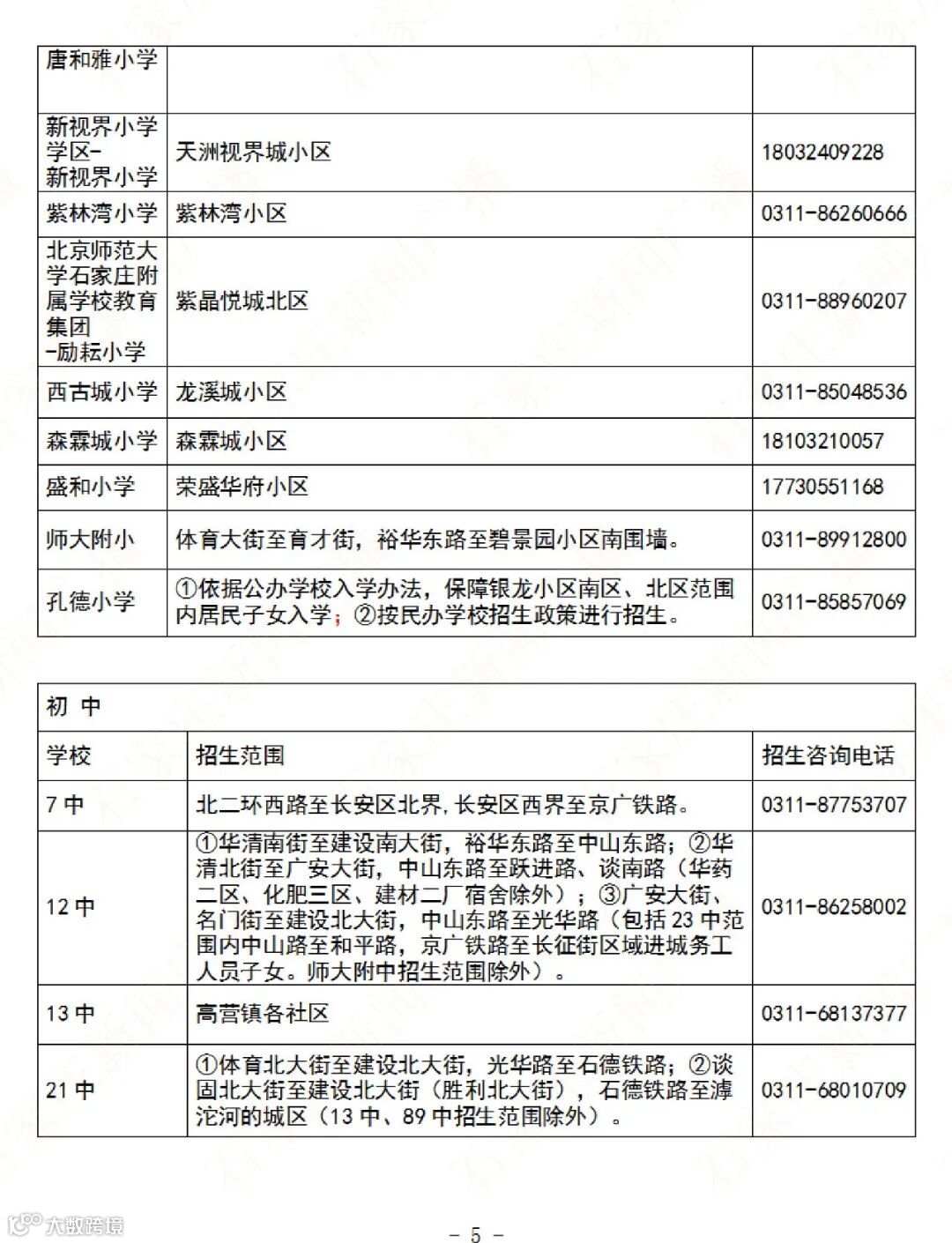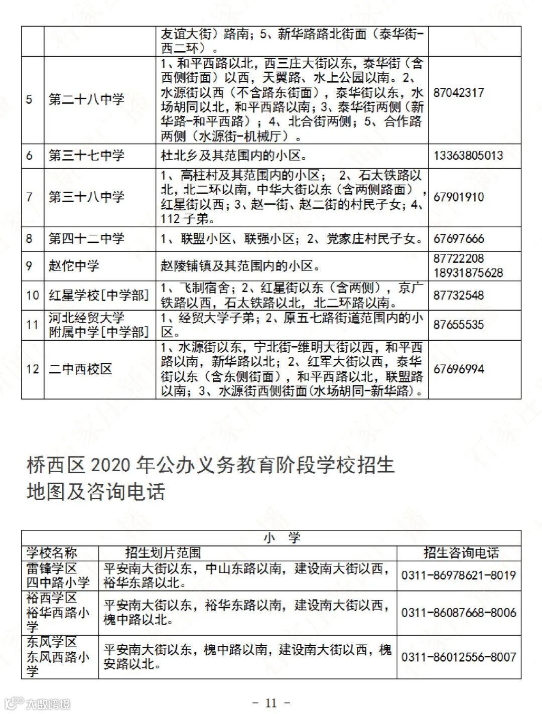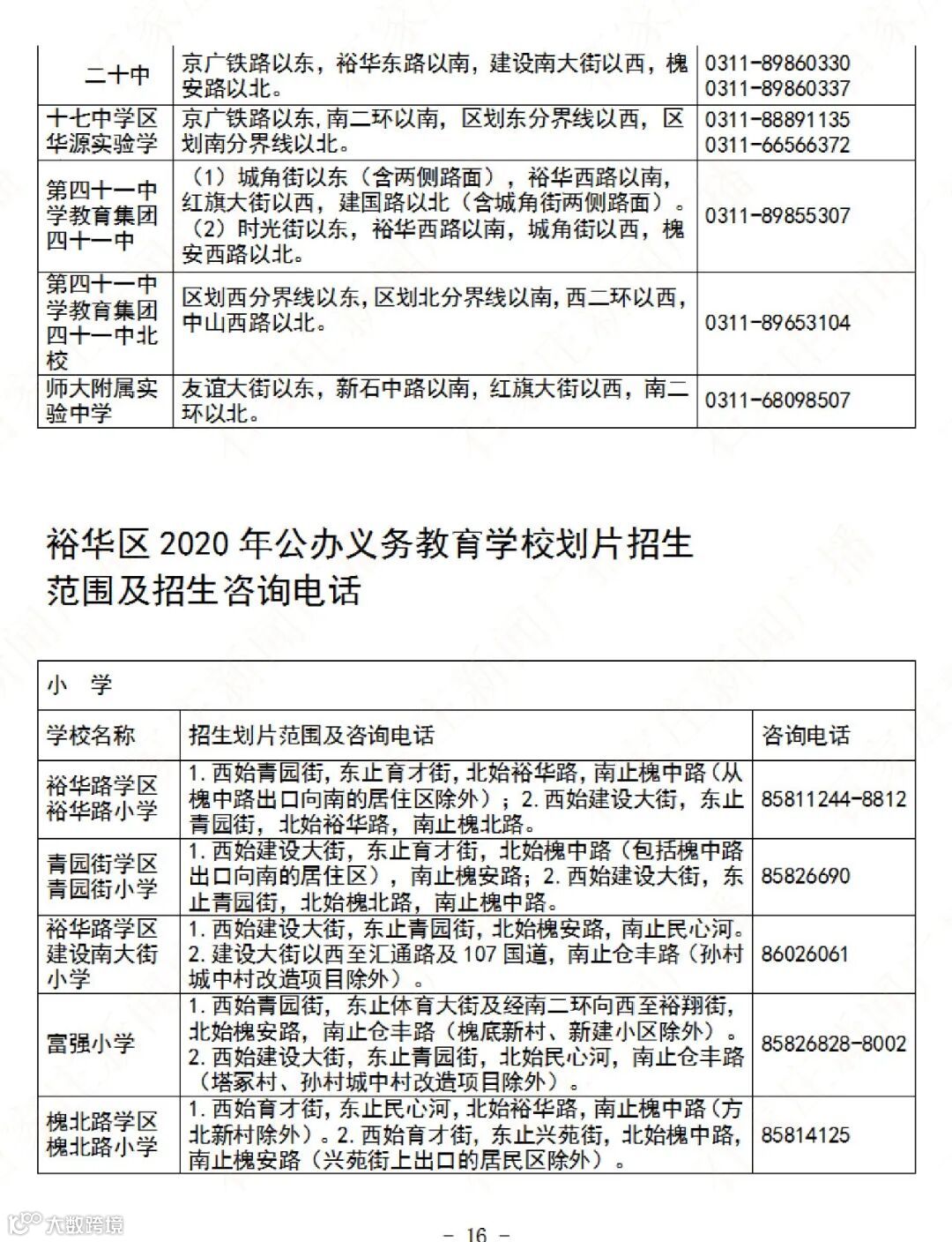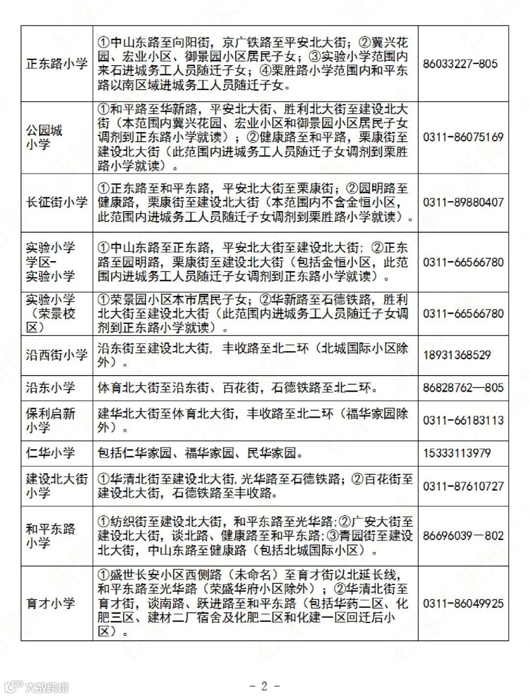 石家庄公办义务教育阶段学校招生地图及咨询电话→