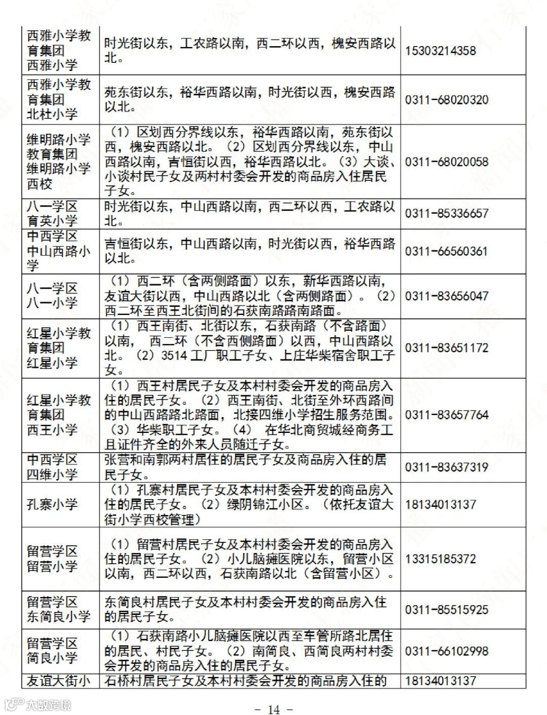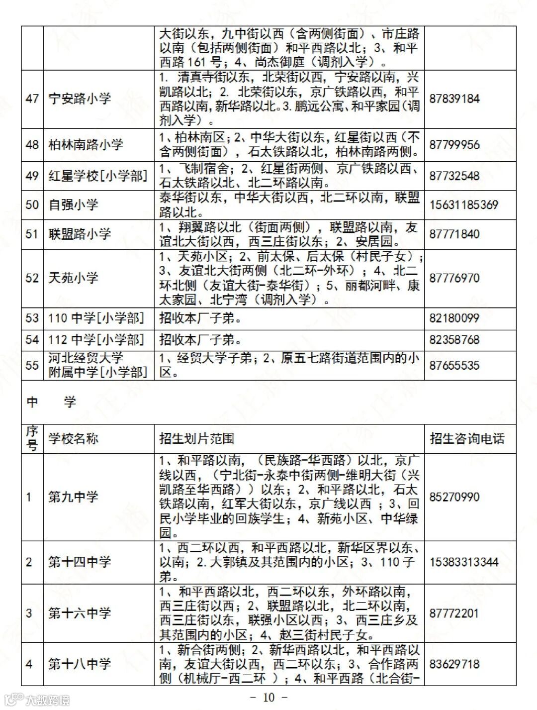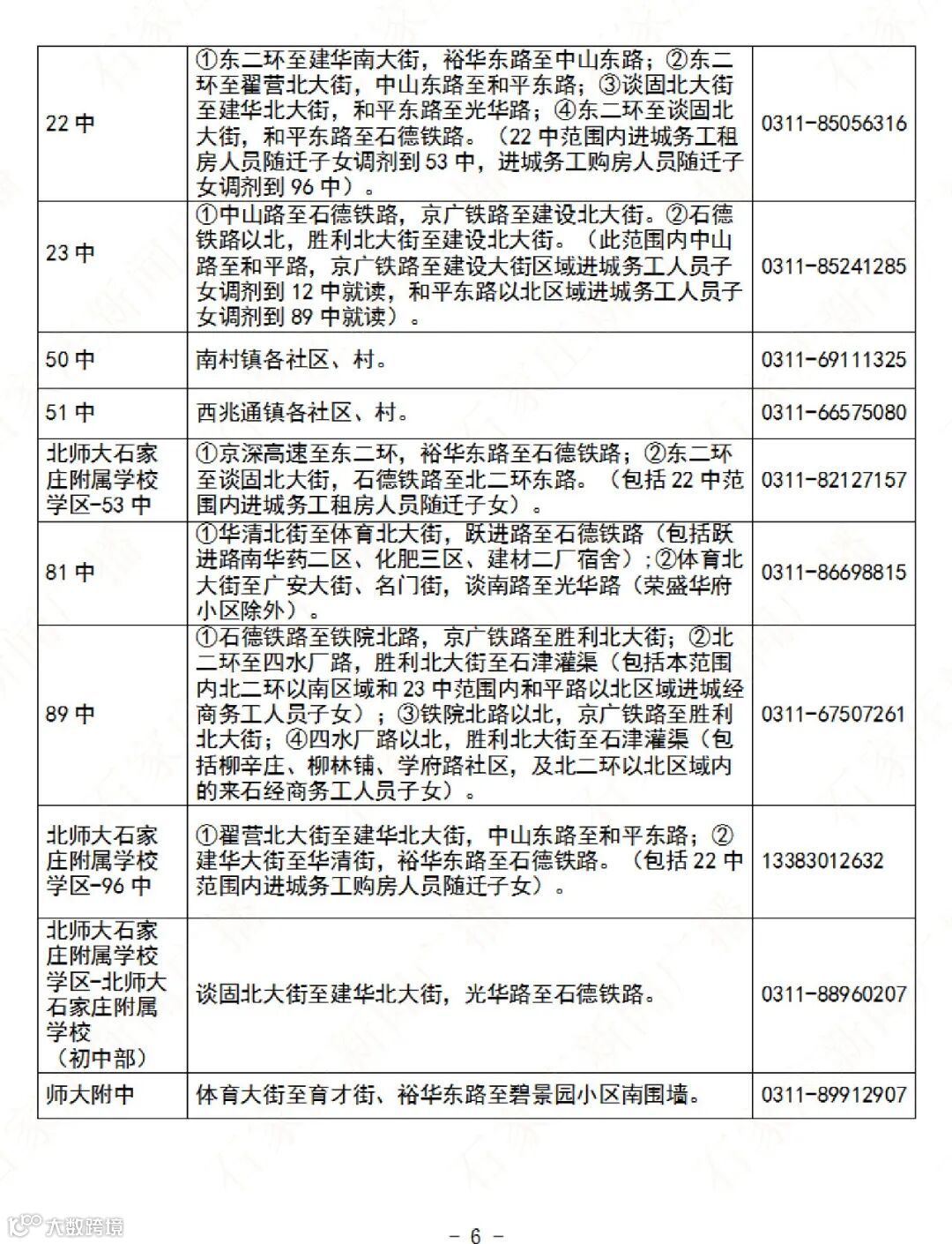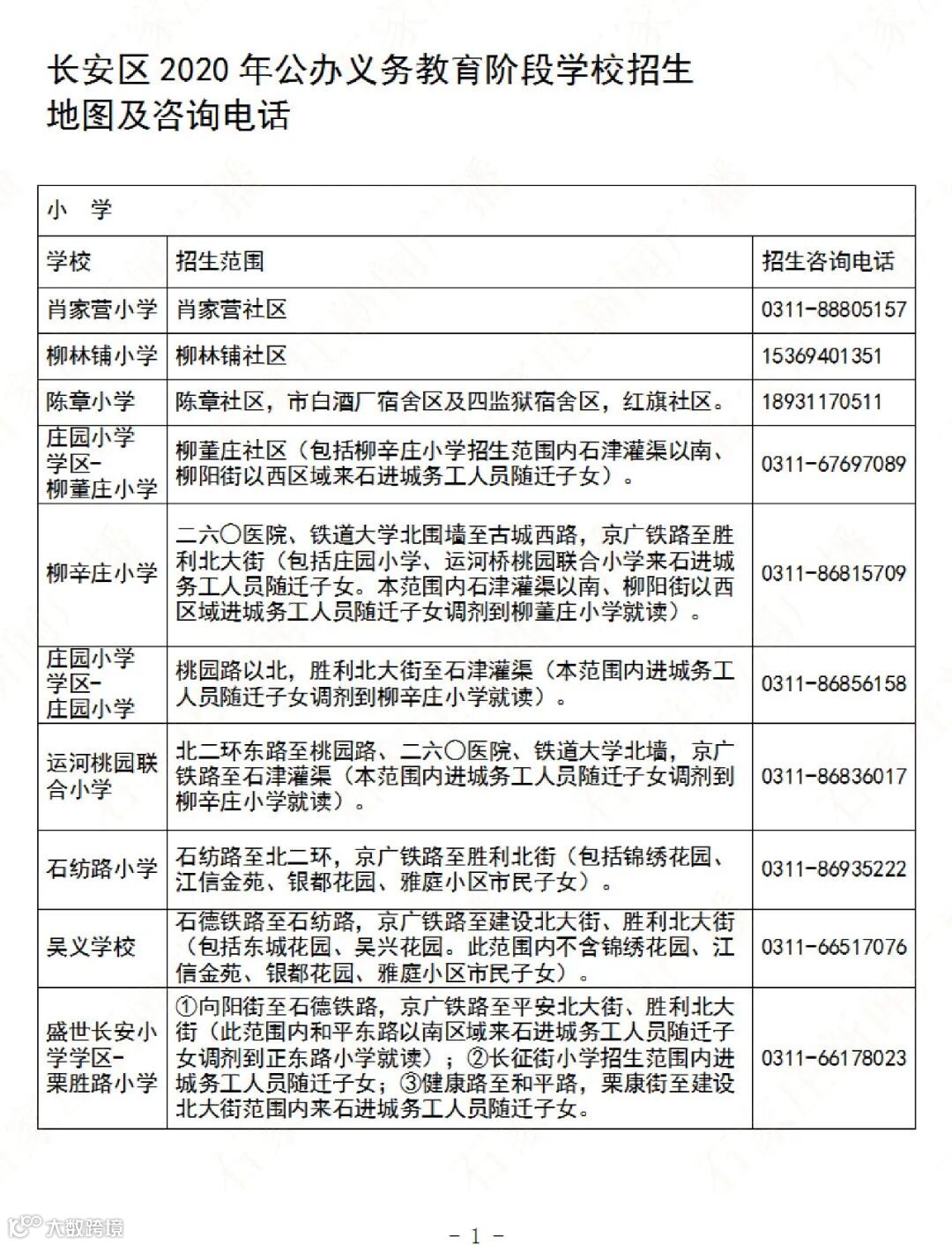 石家庄公办义务教育阶段学校招生地图及咨询电话→