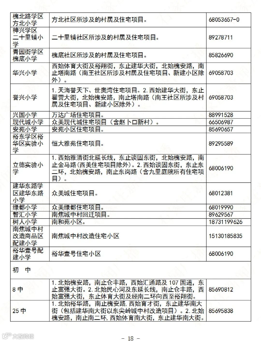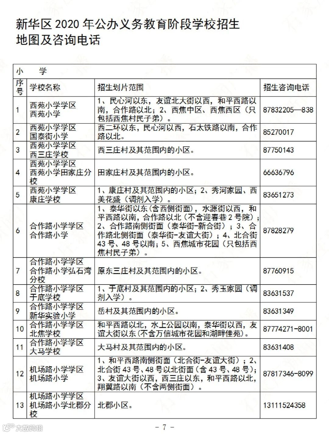 市主城区公办义务教育阶段学校划片招生范围及招生咨询电话公布如下。