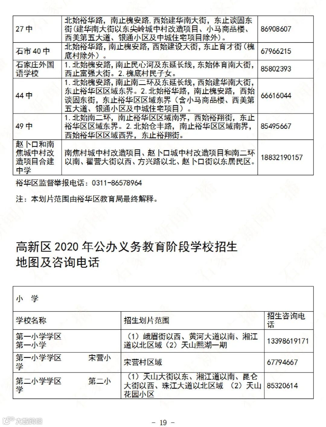 按照教育部、省教育厅“全面落实义务教育免试就近入学规定”有关文件要求,主城区各教育局合理划定公办义务教育学校招生范围,今年对新改扩建的中小学划定了新的片区,如长安区西古城小学、长安区励耘小学、长安区盛和小学、新华区明珠花苑配套小学(金地分校)、桥西区17中北校区片区等,同时还调整了高新区第五小学教育集团片区,做到了“无缝隙、零死角、全覆盖”,现将2020年