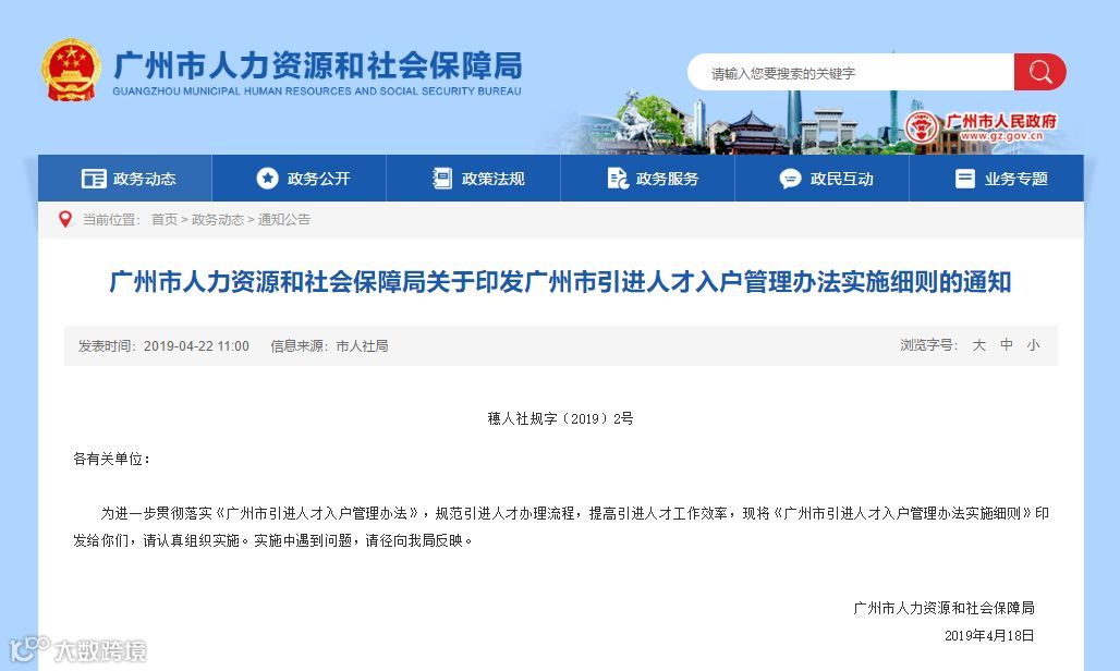 广州市人力资源和社会保障局关于印发广州市引进人才入户管理办法实施细则的通知