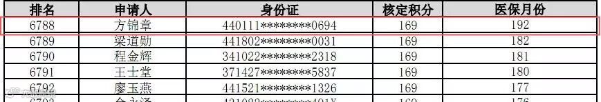 最低积分169分的申请者
