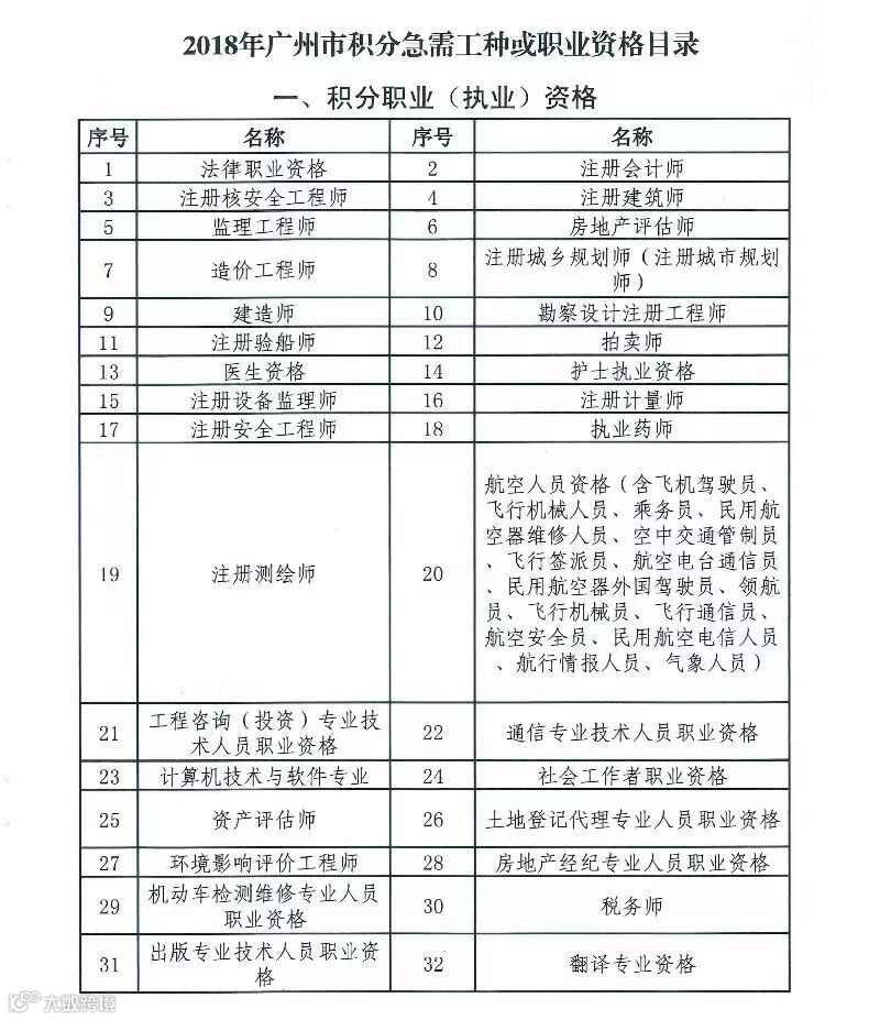 广州市积分急需工种职业