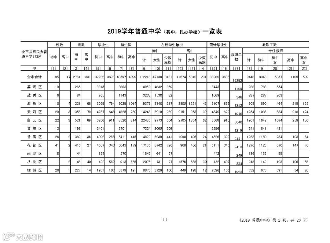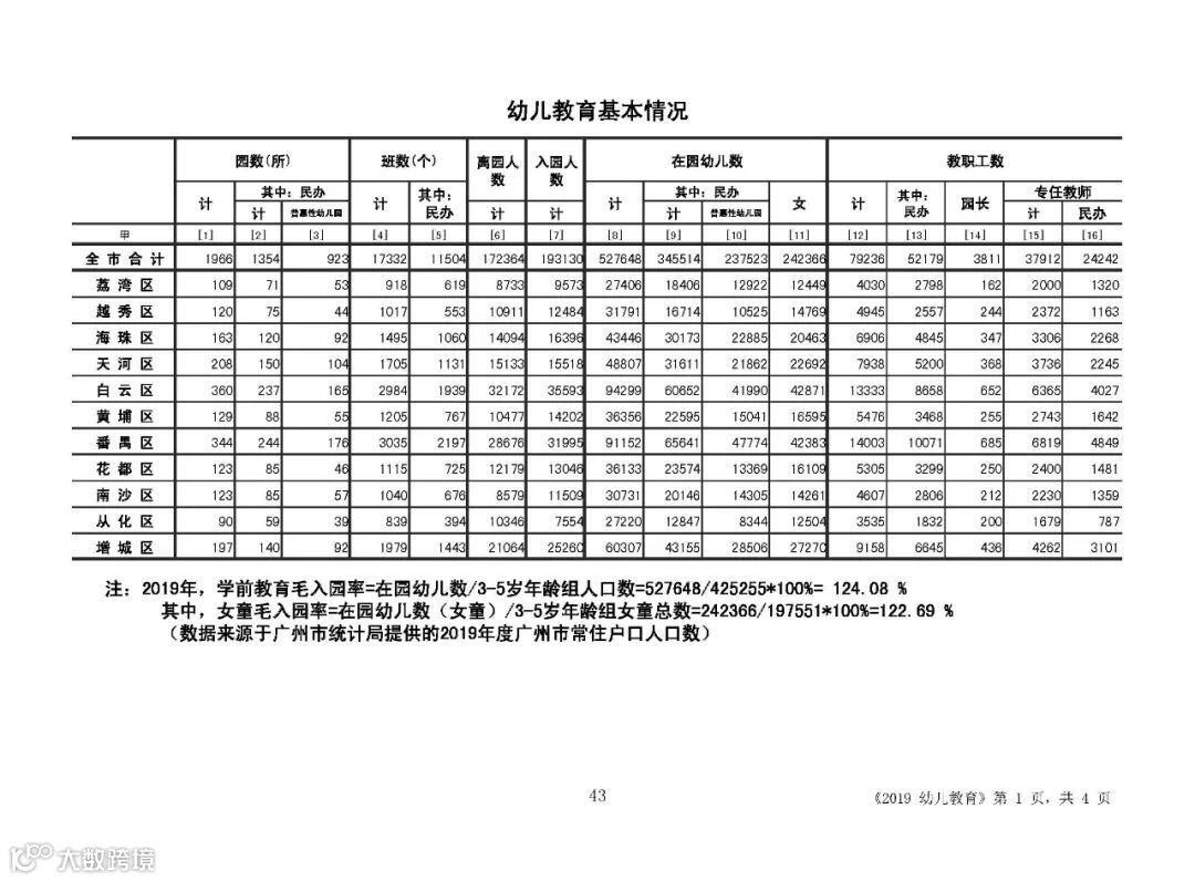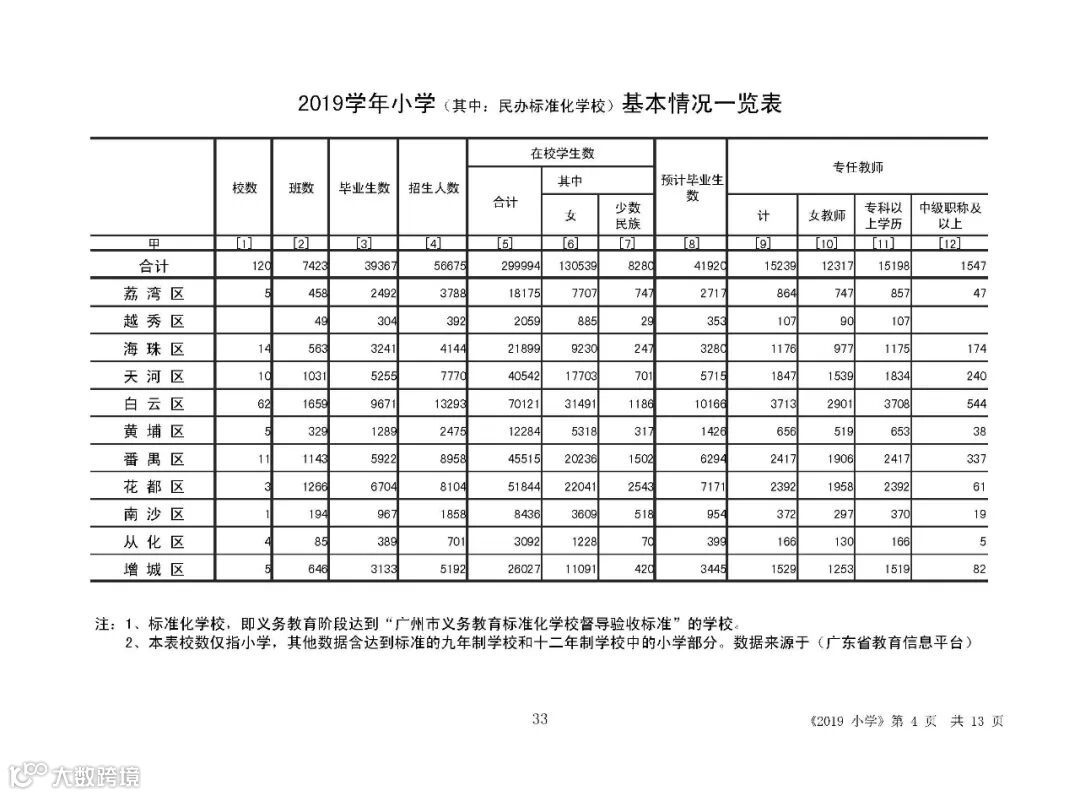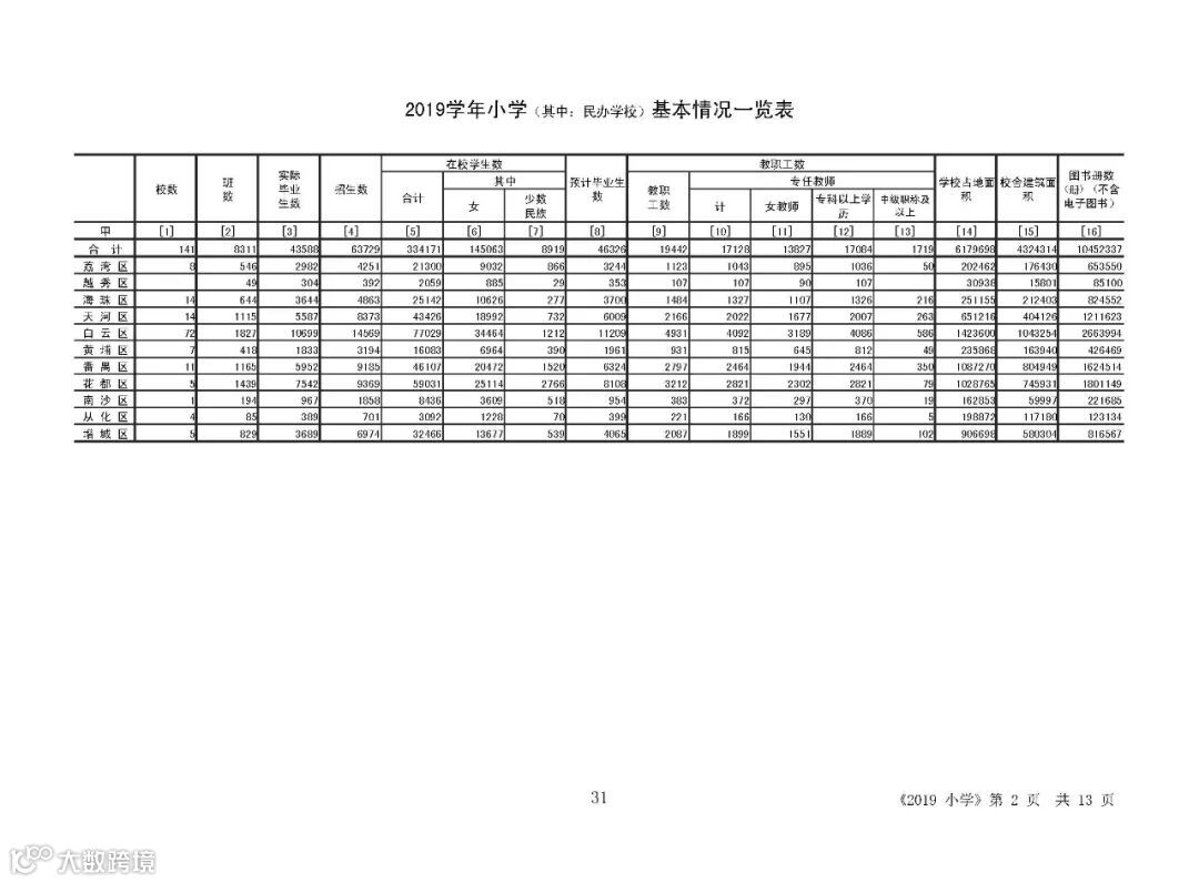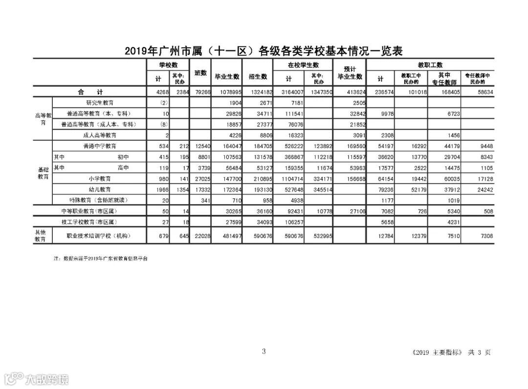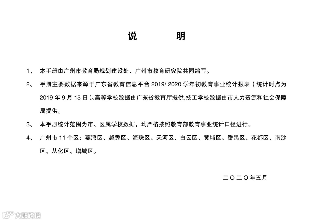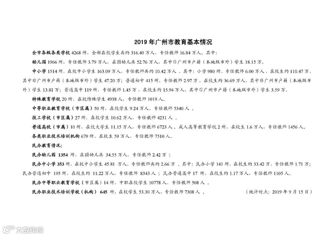 最新广州教育统计手册已出炉,统计手册详细公布了关于广州市幼儿园到高等教育的一系列数据,这些数据对升学是很有参考价值的。从公布的数据看,明年小学毕业生166886人!中考毕业生119752人!也可以看出明年的幼升小人数、中高考人数;各区的户籍生和非户籍生占比情况;还有各区学校数量、班量和老师学历情况等。