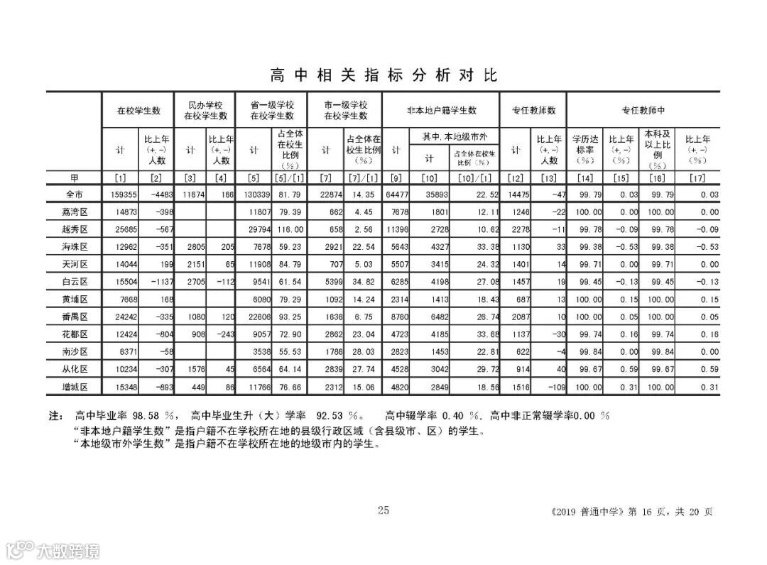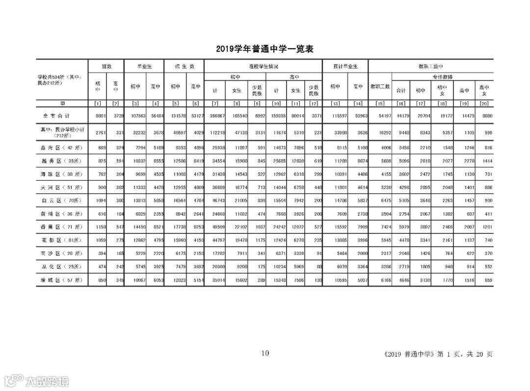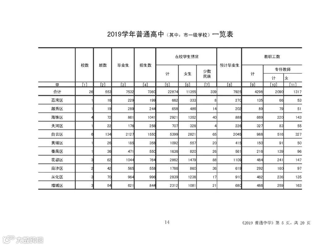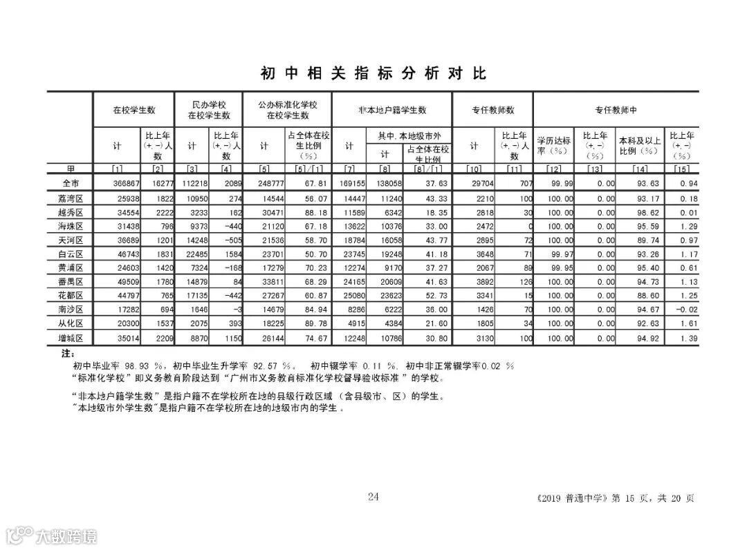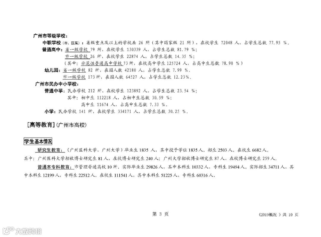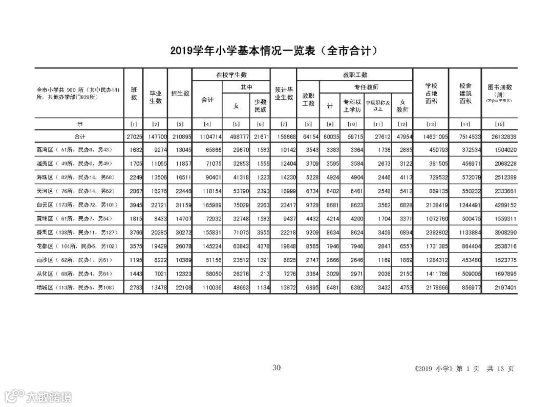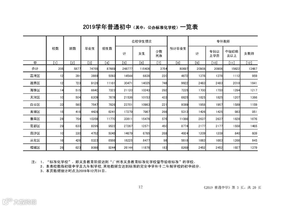 最新广州教育统计手册已出炉,统计手册详细公布了关于广州市幼儿园到高等教育的一系列数据,这些数据对升学是很有参考价值的。从公布的数据看,明年小学毕业生166886人!中考毕业生119752人!也可以看出明年的幼升小人数、中高考人数;各区的户籍生和非户籍生占比情况;还有各区学校数量、班量和老师学历情况等。