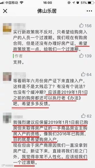 不少网友在留言区写下心声和呼吁:希望政策给予购房入户过渡期