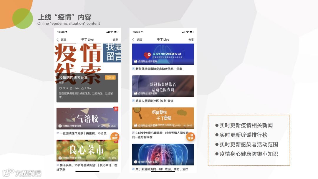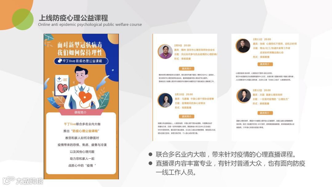 您关心的疫情新闻和疫情防护知识,您需要的大咖防疫心理公益课程、您喜爱的疫情假期亲子阅读训练营,东胜服务千丁Live以内容输出的形式让您安心在家,远离传染危险。疫情不出门,防疫服务送到家!