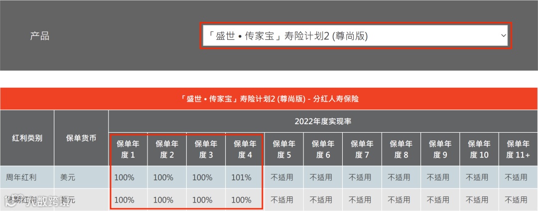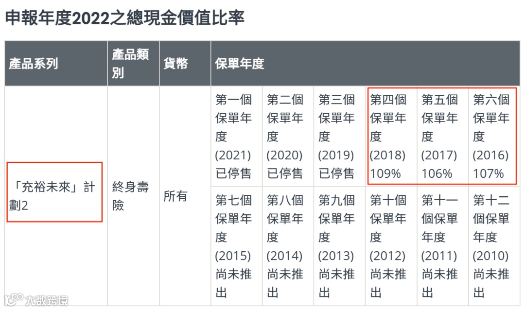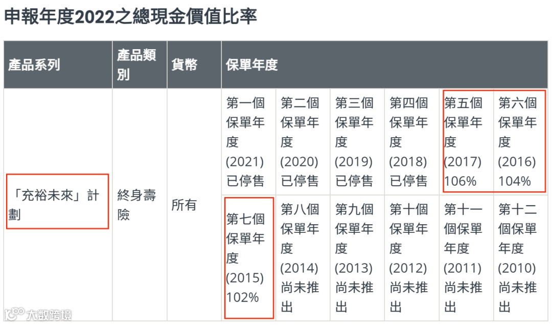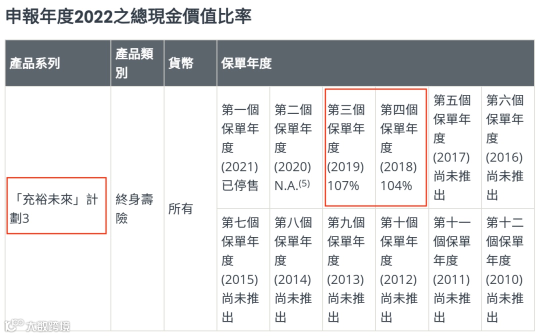 1、【充裕未来】系列,曾是热卖的美元储蓄分红险之一,也是目前盈御多元货币系列前身。可以看到,充裕未来系列所有产品总现金价值比率都超过了100%。意味着客户实际获得的现金价值,高于计划书上的预期数字。