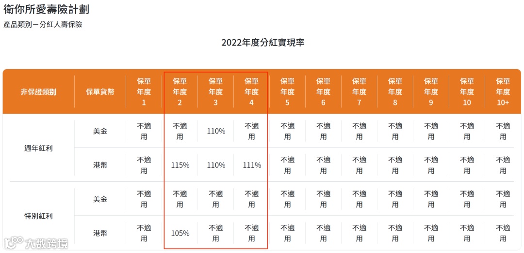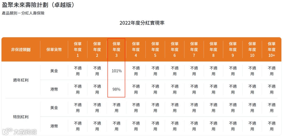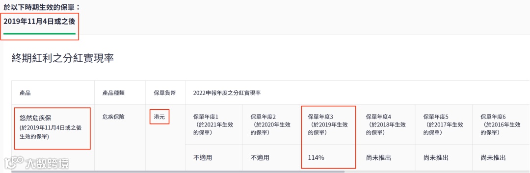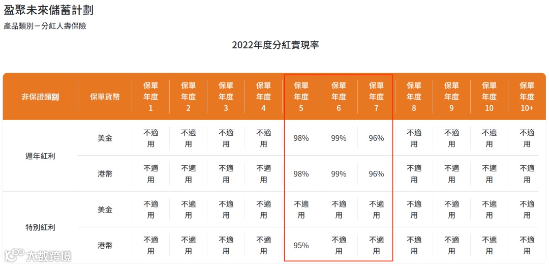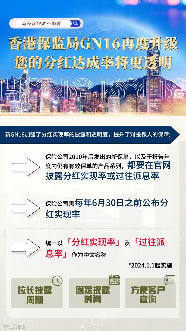 分红实现率:履行比率也称为分红实现率,是衡量“非保证收益”投资表现的重要指标。根据GN16的指引,所有保险公司需要在其官网公布其分红产品在过去5年内的红利实现率。以便客户了解各大保险公司的真实派发红利与当初保险计划书上所列的差距。履行比率越高,该产品更值得信赖。