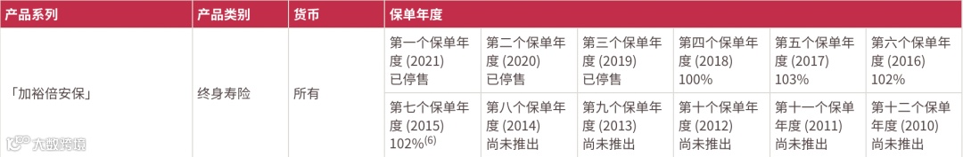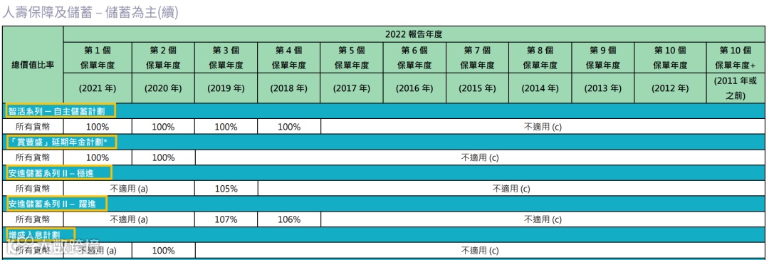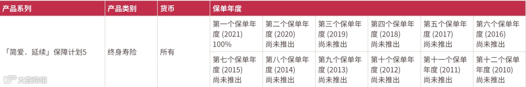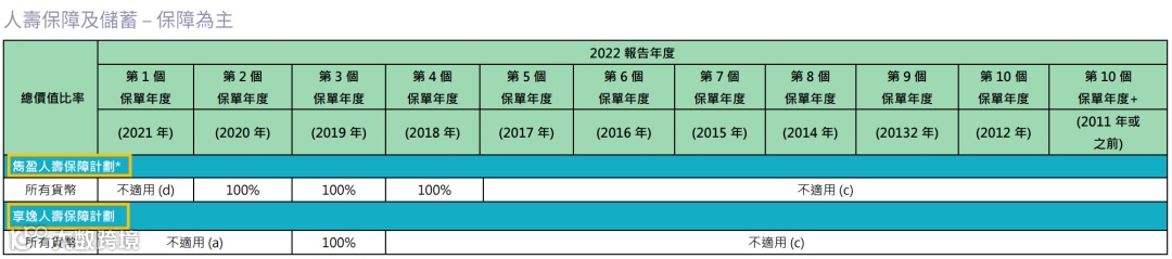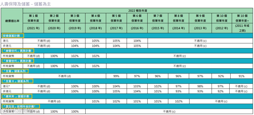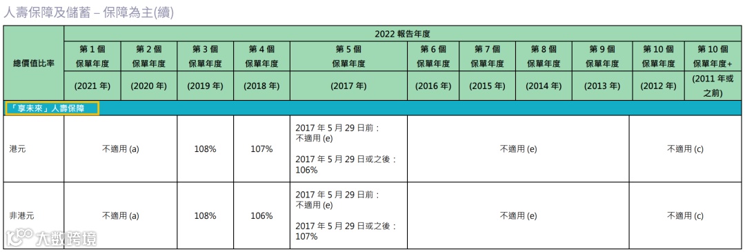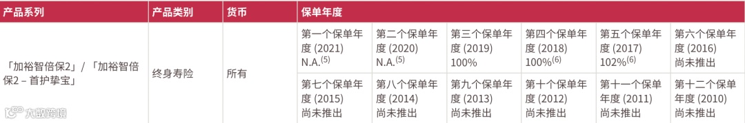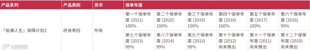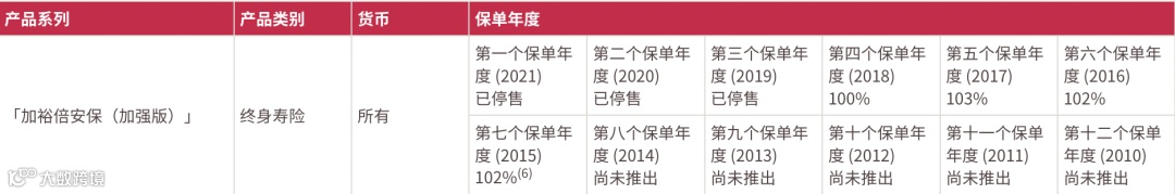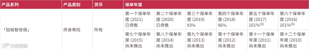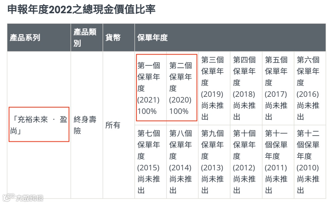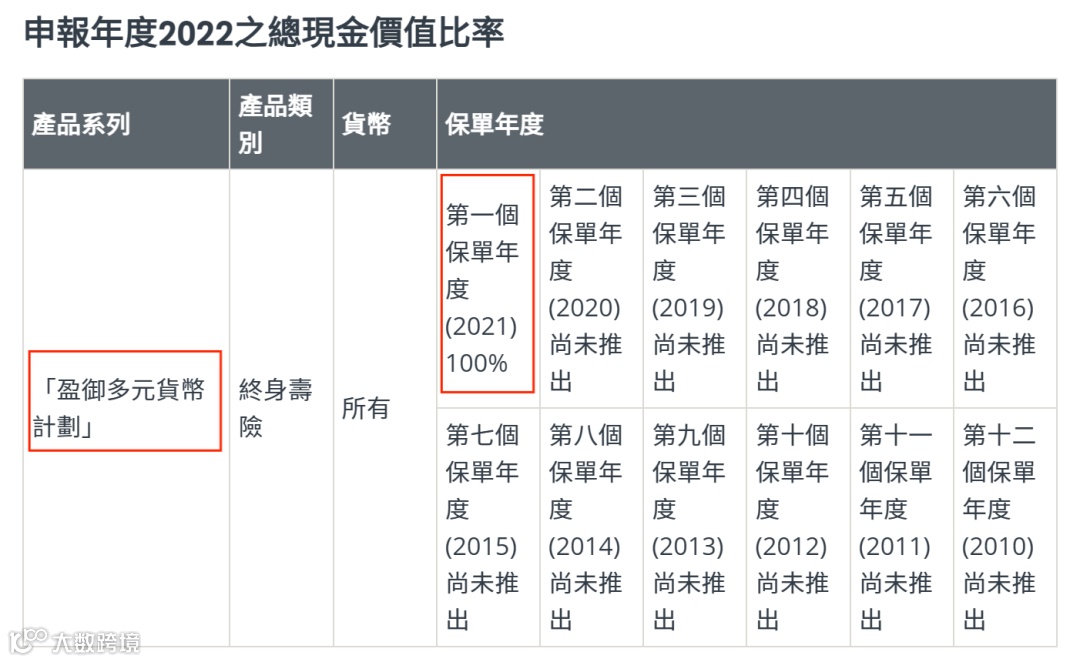 2021年推出了盈御多元货币,22年的总现金价值比率是100%。目前该系列已升 级到二代“盈御多元货币2”。