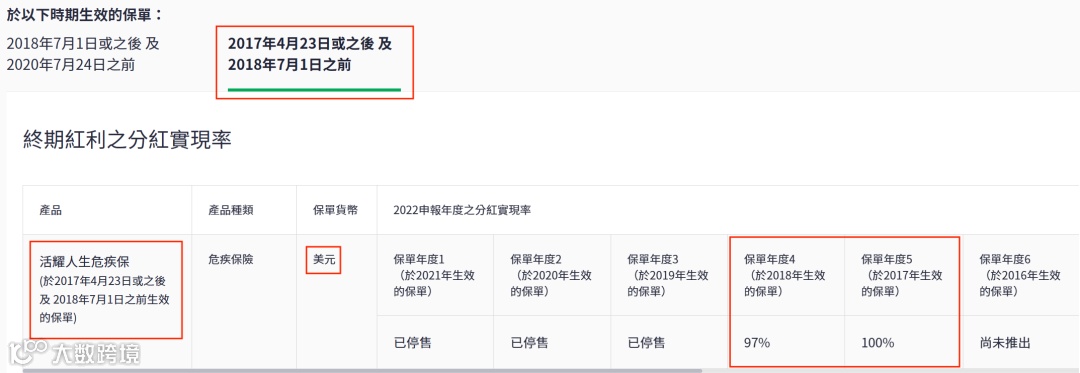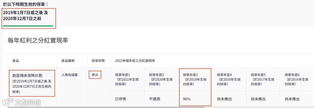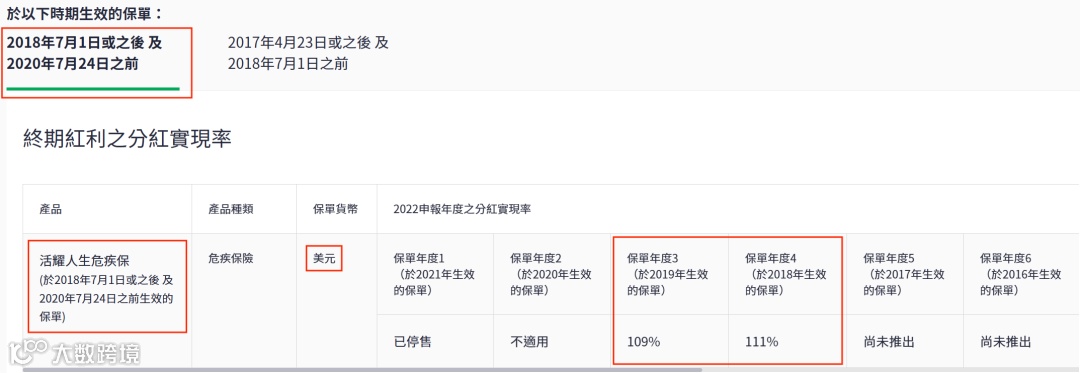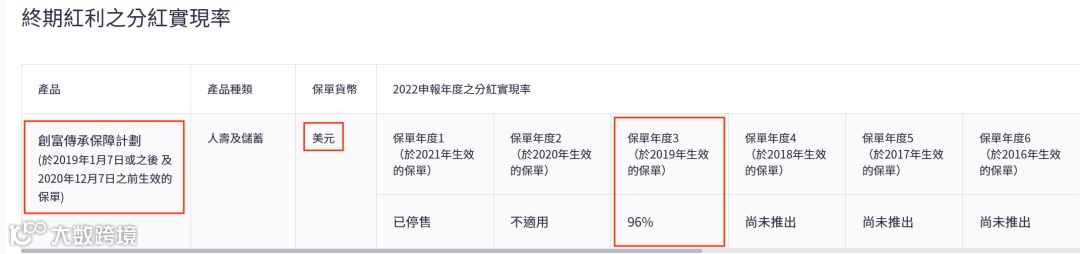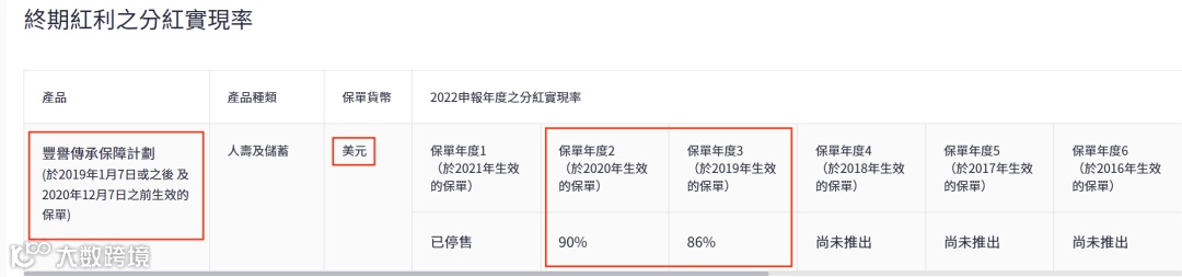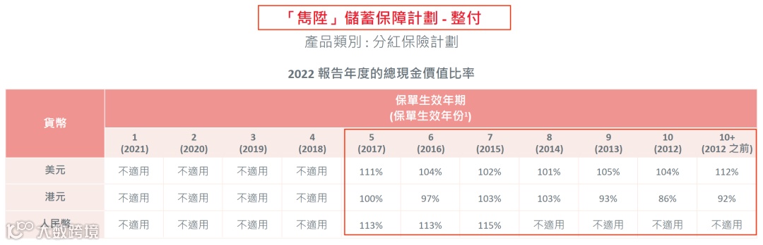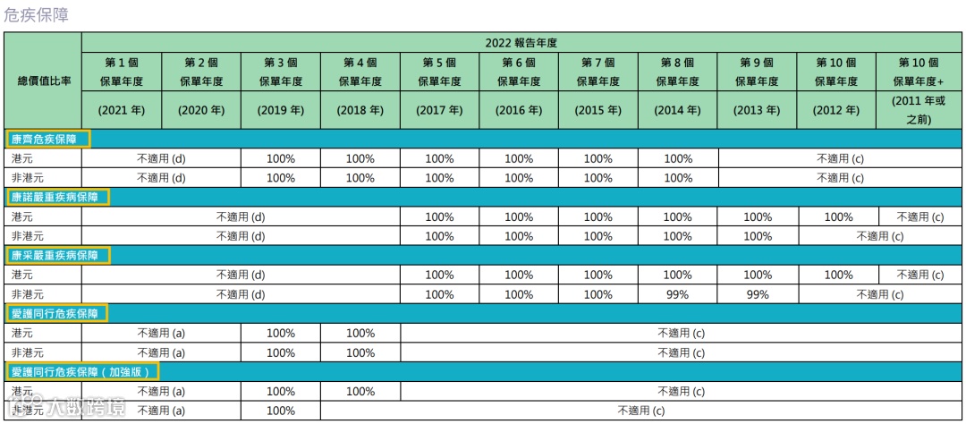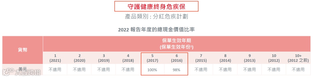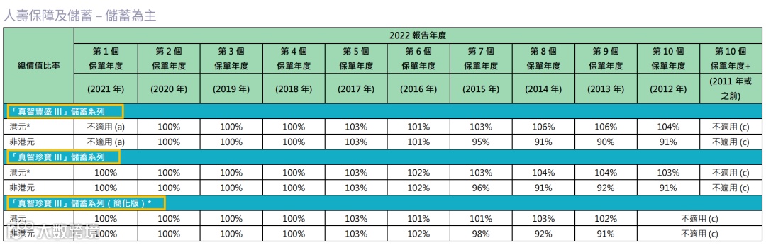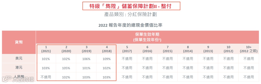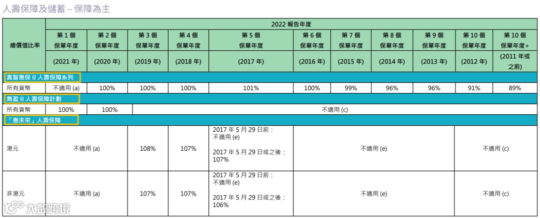 2021年推出了盈御多元货币,22年的总现金价值比率是100%。目前该系列已升 级到二代“盈御多元货币2”。