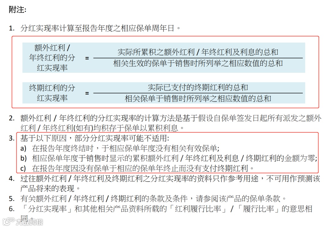 万通分红实现率附注(储蓄/重疾)