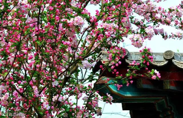 “海棠不惜胭脂色,独立蒙蒙细雨中。”娇艳的海棠花,层层叠叠,盛开于枝条,点点如胭脂,十分美丽。