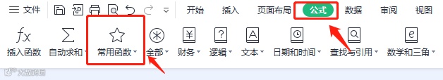 在Excel表的【公式】菜单栏中,找到【常用函数】,选择【插入函数】。