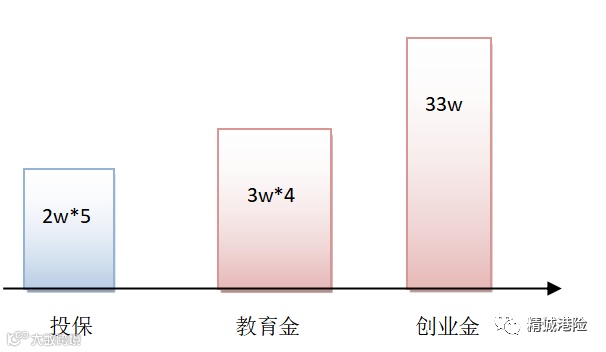 孩子18—21岁入读海外大学,可以每年领取3万美金,合计领取12万美金;35岁孩子创业时还可以一次性领取33万美金。10万美金投入,在孩子读大学和创业时领取45万美金。