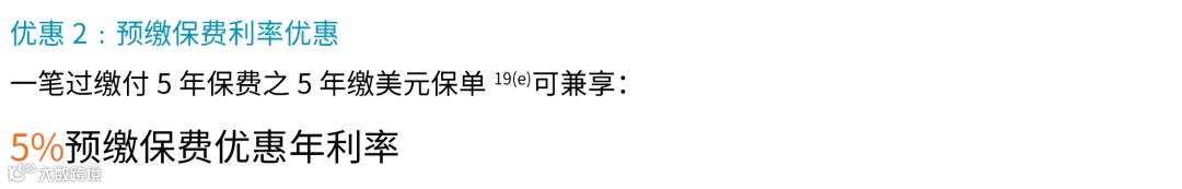 优惠:最多预缴2年(第2年和第3年)保费,享6%保证利率优惠。
