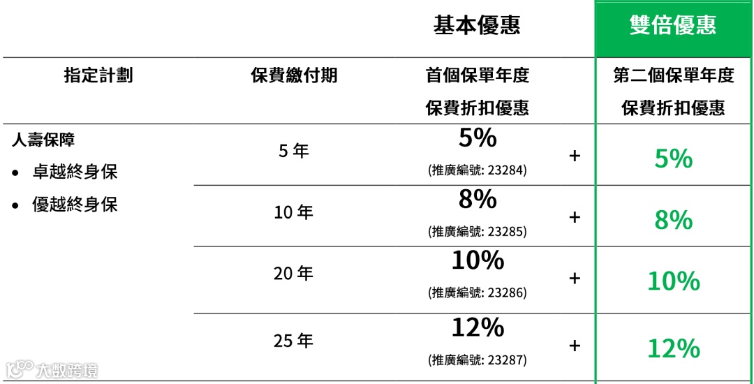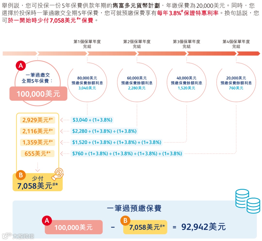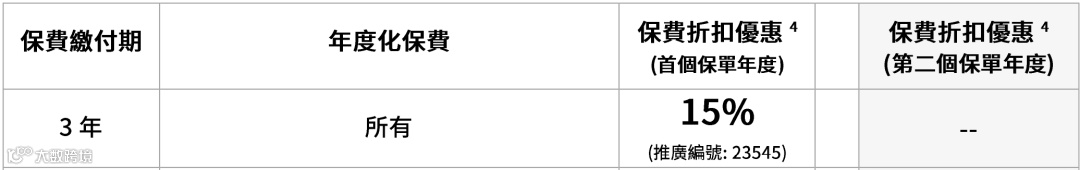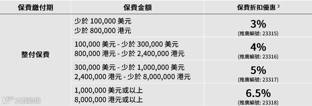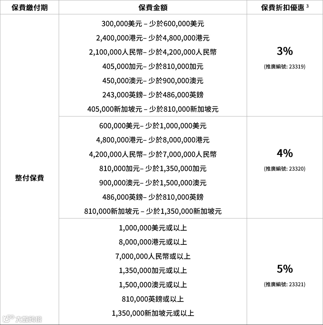 ① 整付:整付保费享4%保費折扣优惠