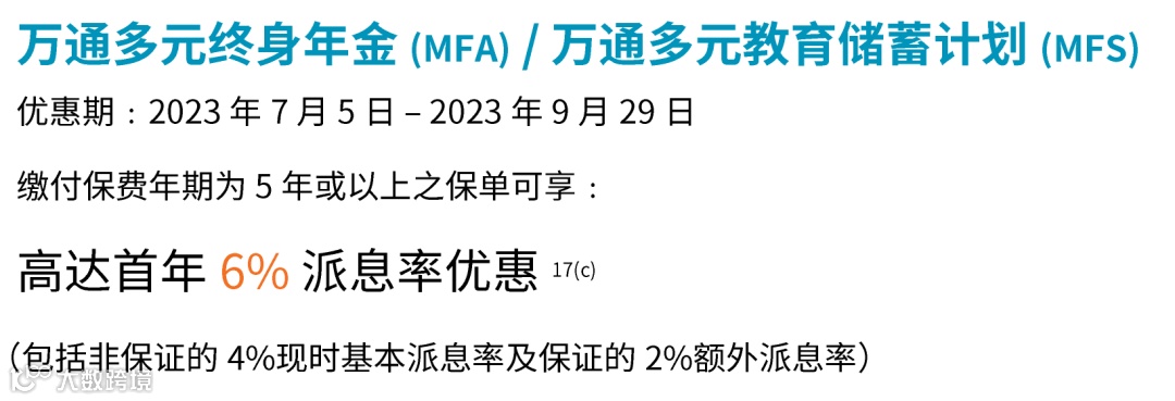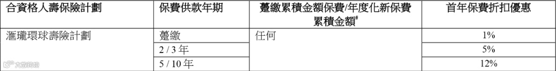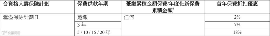 优惠:缴付保费年期为5年或以上可享高达首年6%派息率优惠