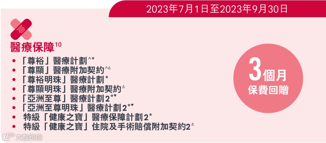 优惠:投保「尊裕/尊显/亚洲至尊明珠2」等,享3个月保费回赠。