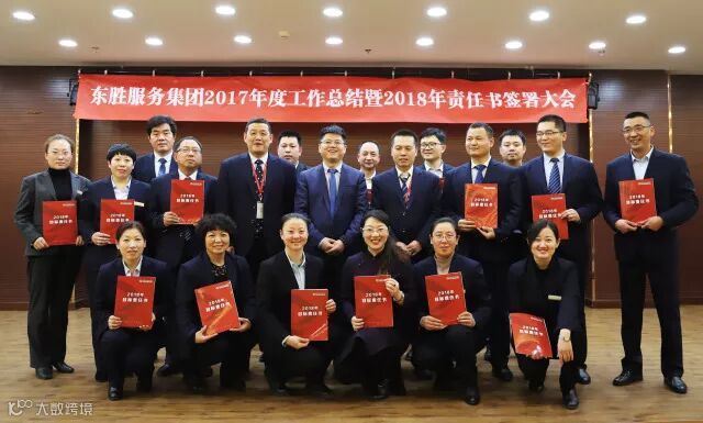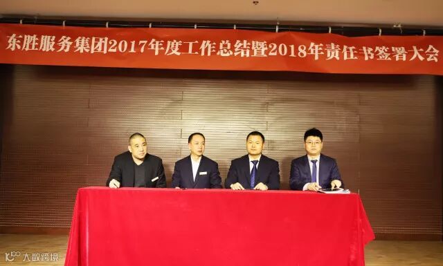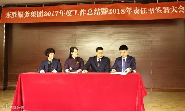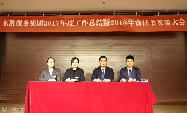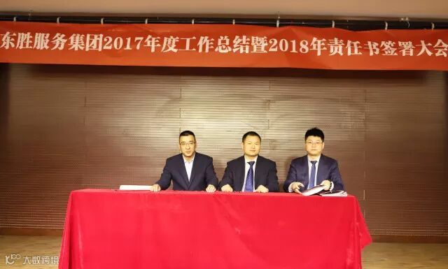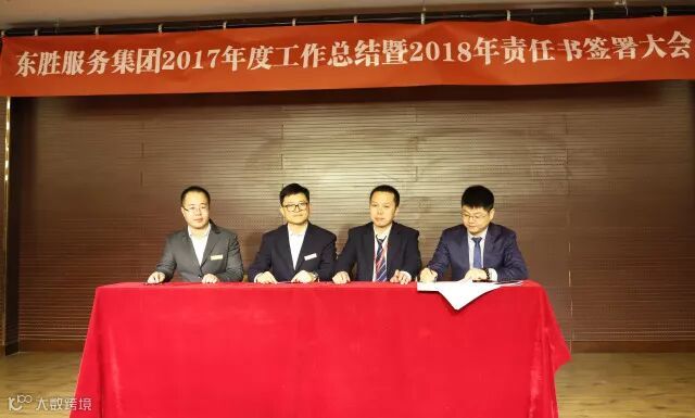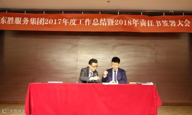 东胜服务集团董事长李彦宽先生根据2018年各项经营指标,就各自工作分工情况,分别与各个副总、总监带领的团队签署2018年目标责任书。