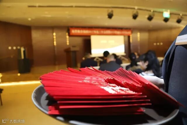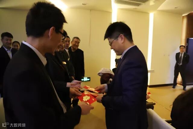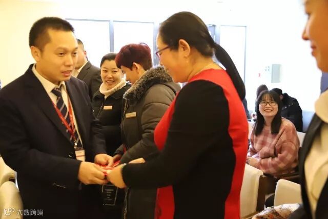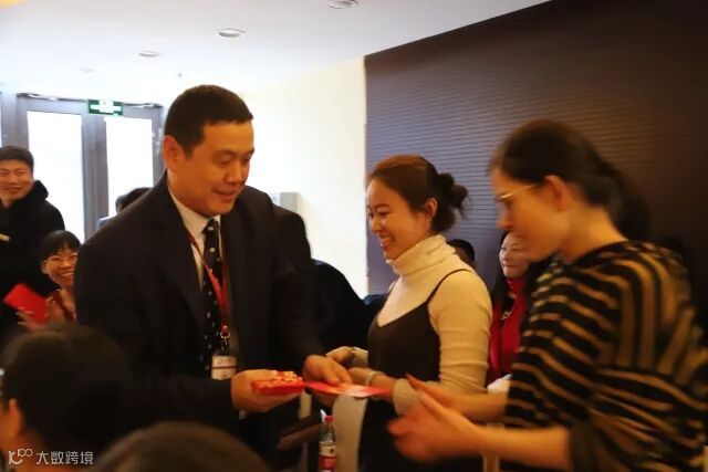 会议开始前董事长、副总为到场员工发红包