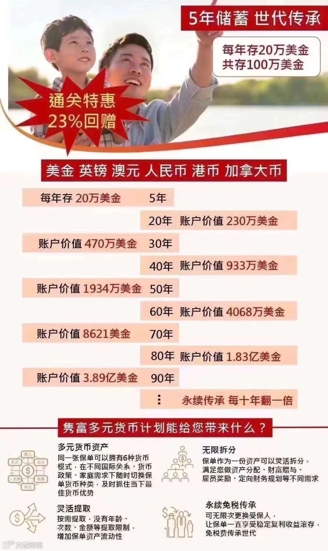 “香港保单可以投资环球市场,大部分以美元结算,近年来也可以选择多元货币,这样一来可以平衡风险。”,这种更多元化的投资是香港保险的优势所在。
