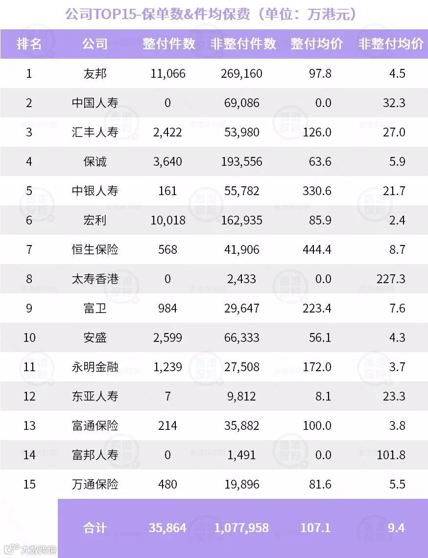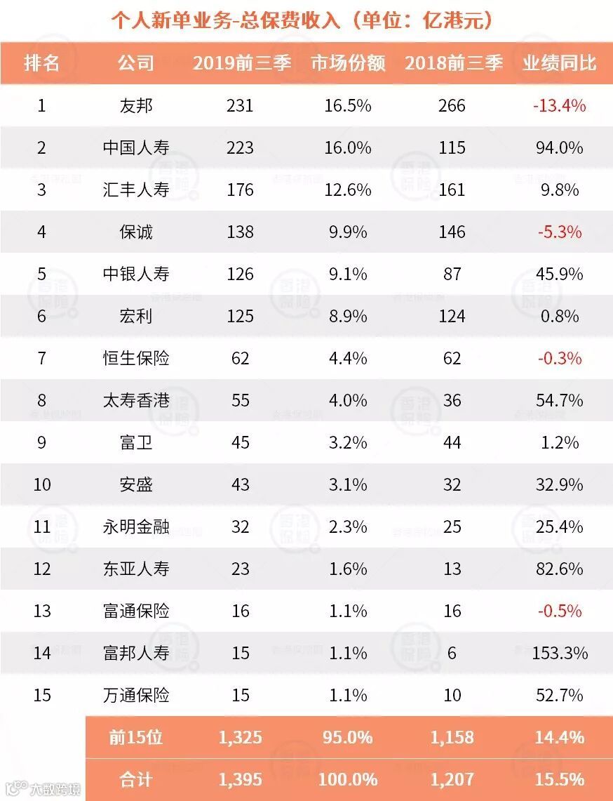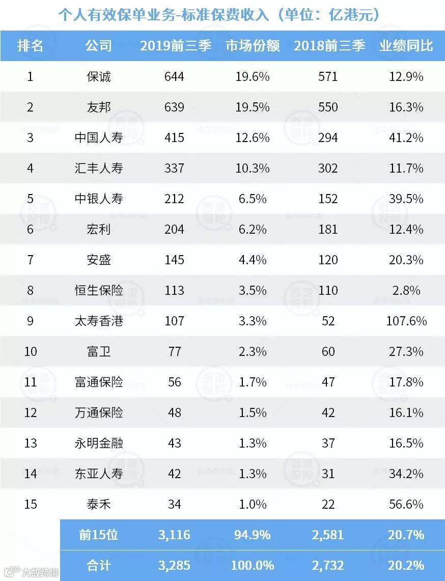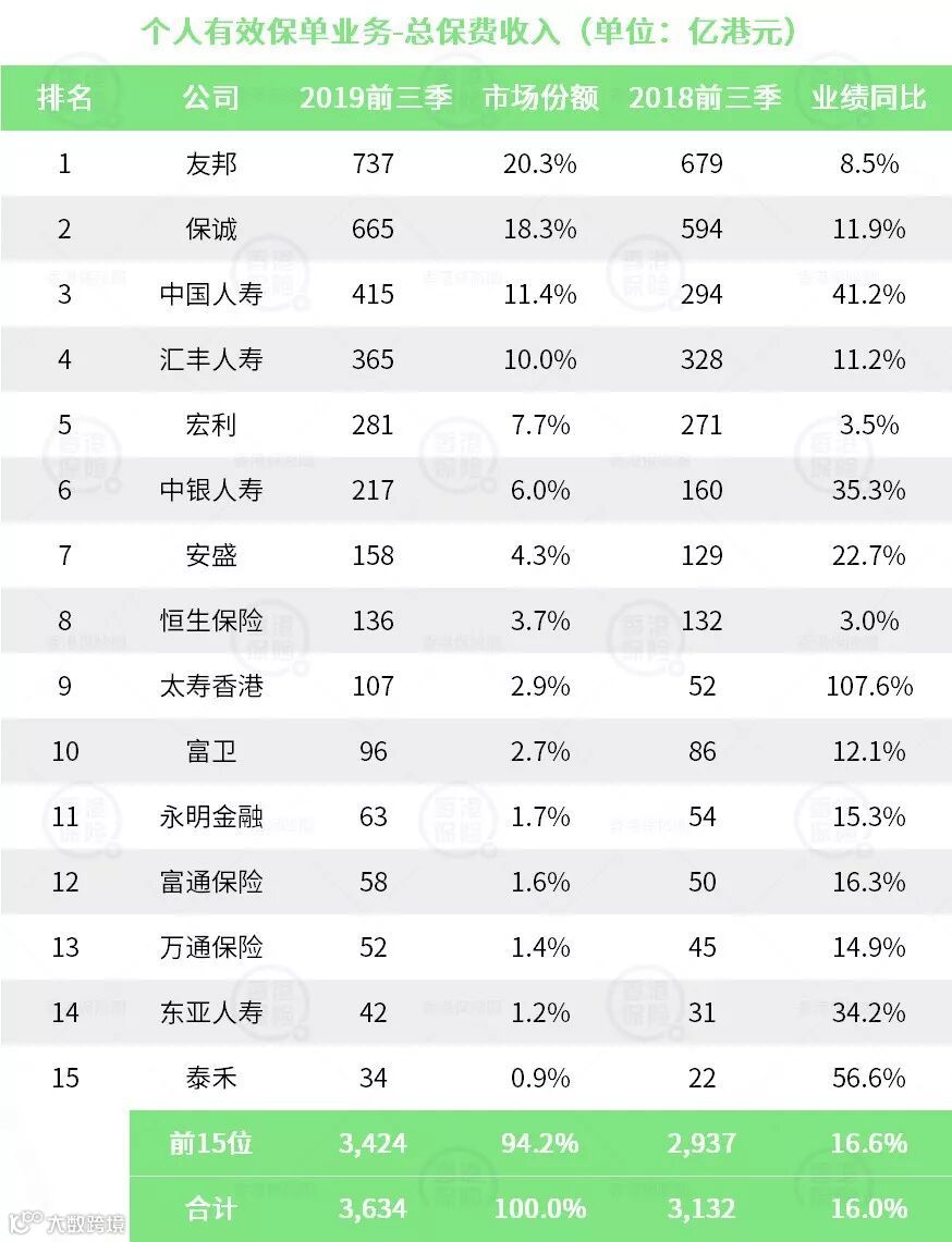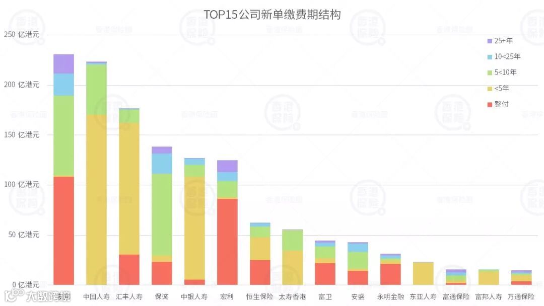 友邦、宏利、汇丰人寿、恒生保险和保诚,整付保费收入占比非常高。 -