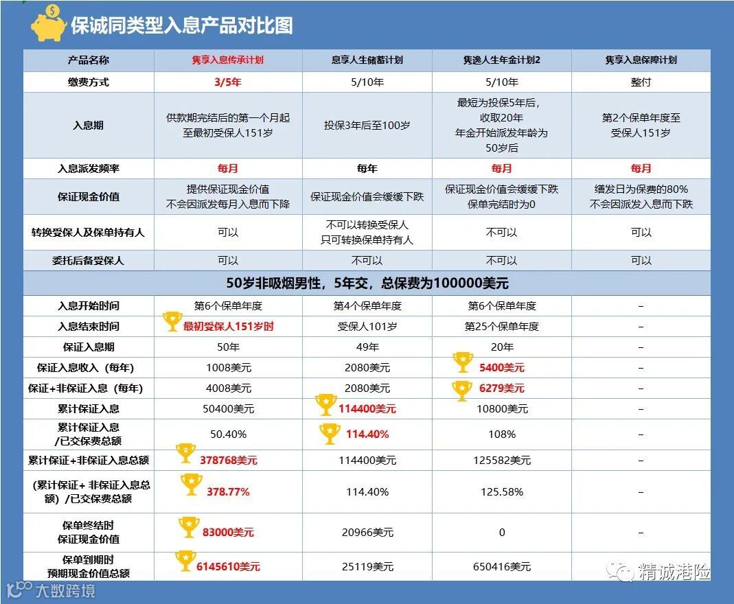 虽然每年可保证领取的入息金额不是最高的,但是非保证入息金额比较给力。