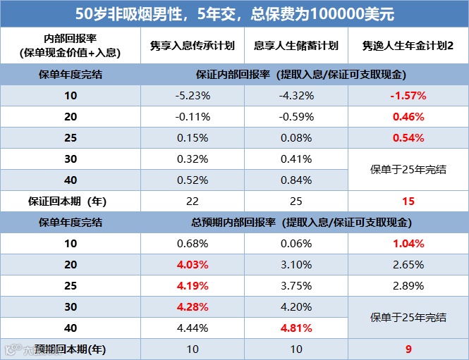 ▶「隽逸人生年金计划2」中长期保证回报最高,回本也是最快的,适合作为养老年金使用。