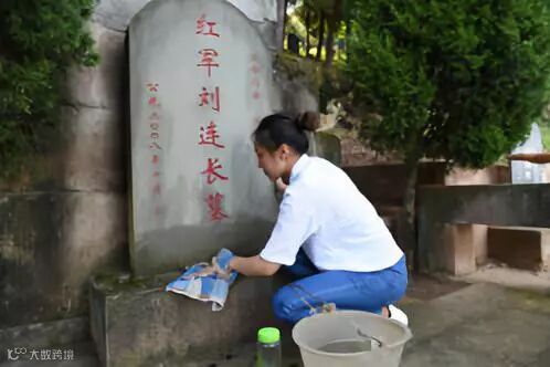 打扫落叶,清除杂草,擦拭墓碑……