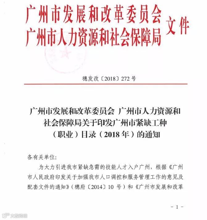 昨天,广州市人力资源和社会保障局针对《关于印发广州市紧缺工种(职业)目录(2018年)的通知》发布了一则公告。
