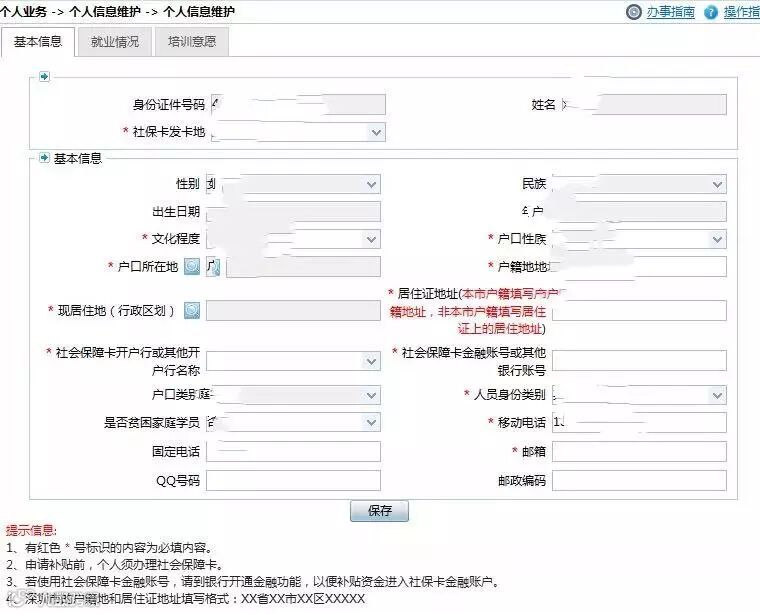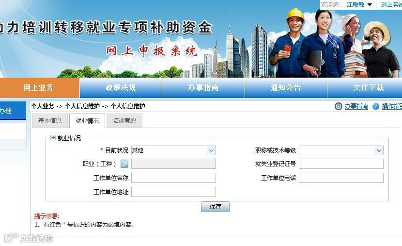⑤填写基本信息、就业情况和培训意愿;