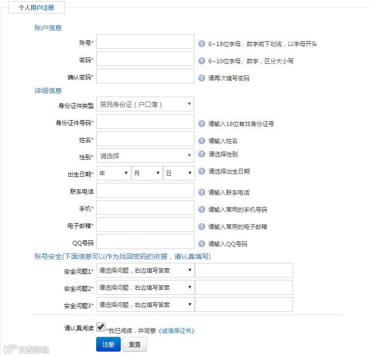 ③填写一些信息,账号密码要牢记;
