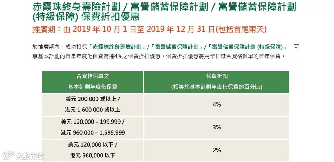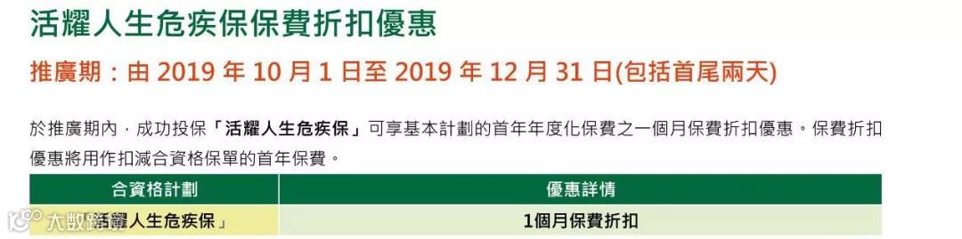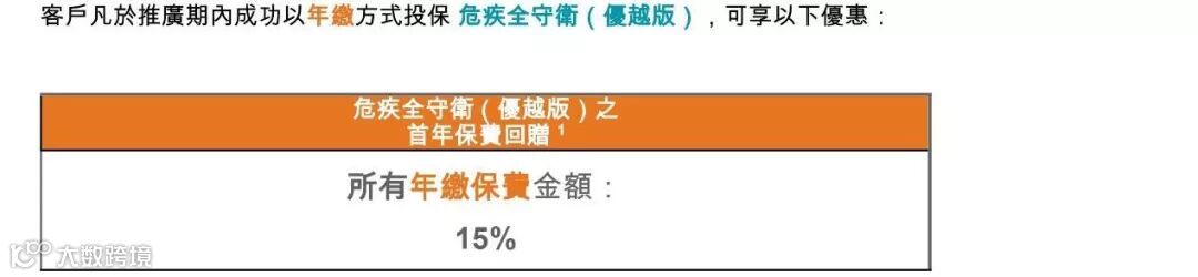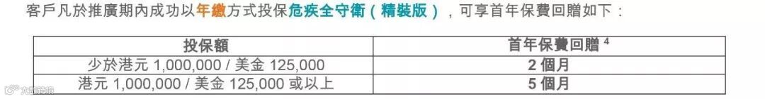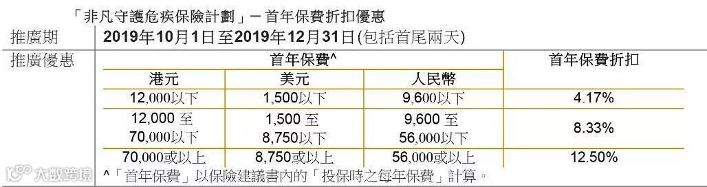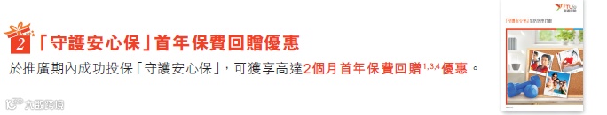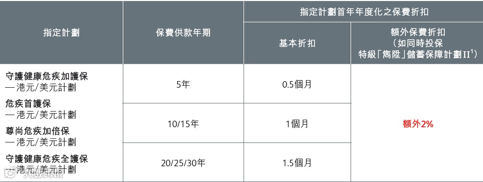 ②「非凡守护危疾保险计划」─首年保费折扣优惠