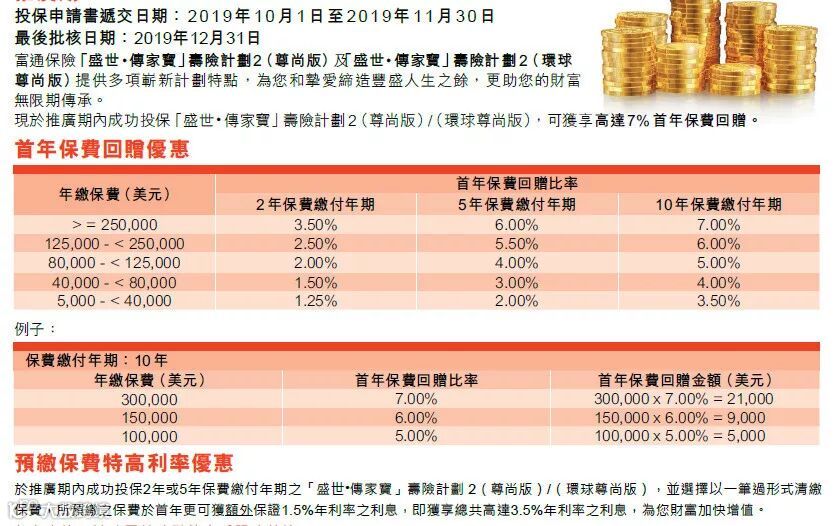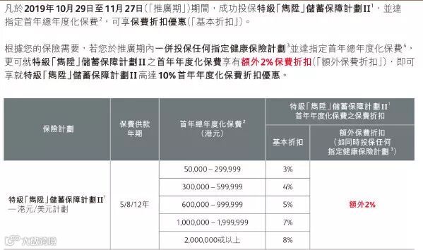若同时一并投保特级「隽升」储蓄保障计划II,可享指定首年保费额外2%保费折扣,即可享高达14.5%首年保费折扣!