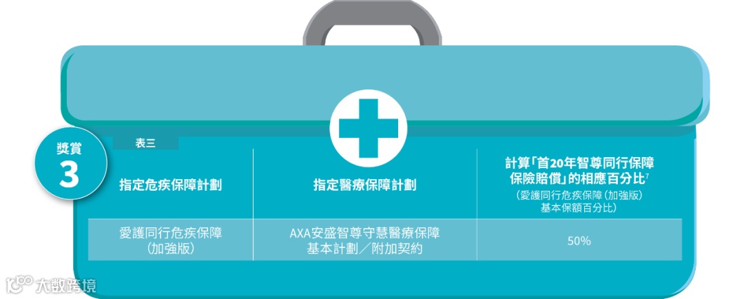 于推广期内,只要您成功投保爱护同行危疾保障(加强版)及AXA安盛智尊守慧医疗保障,将有机会获得以下保障: