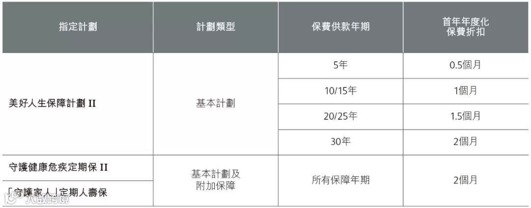 推广期间,成功投保美好人生保障计划 II、守护健康危疾定期保 II 或「守护家人」定期人寿保(「指定计划」),可享高达2个月保费折扣优惠!