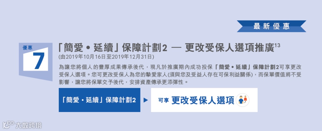 客户凡于推广期间,成功投保「简爱延续」保障计划2,可享更改受保人选项。