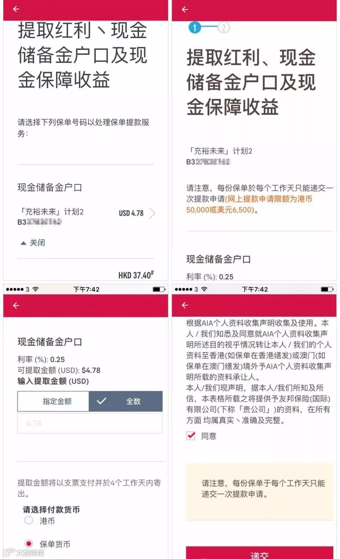 打开友邦的官方APP“友联系”找到保单管理——提取和现金保障收益,即可快速提取到自己的香港银行账户。