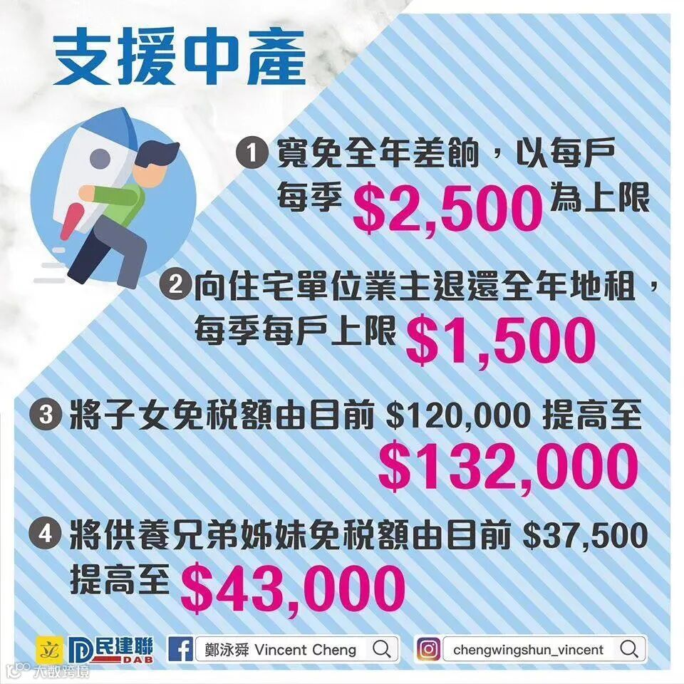 3. 宽减四季住宅差饷,每季上限1,500元。