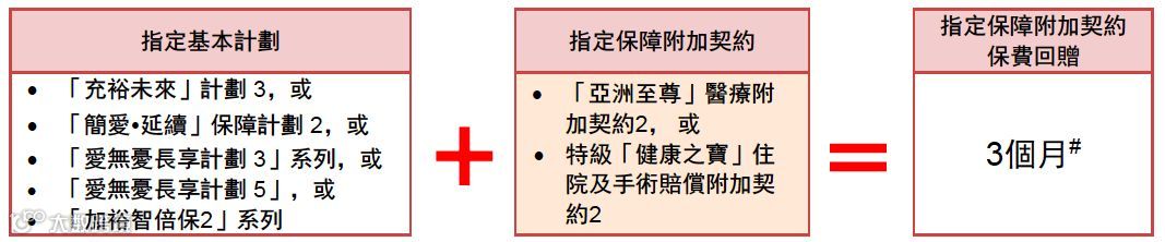 客户凡于推广期间,成功投保指定医疗保障计划,可享最高6个月保费回赠!