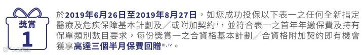 2019年7月1日至2019年9月30日,成功投保下列指定医疗附加契约,可享最高3个月保费回赠!