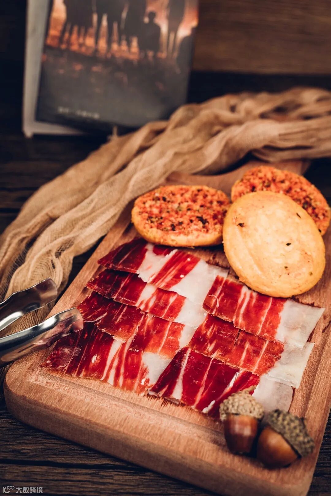 西班牙国宝美食——西班牙火腿,在现场你将能看到“火腿师”专业刀工切割,像花一样盛开、薄厚始终的火腿片,正如拈花般。