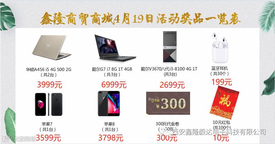 鑫隆商贸商城为感谢全国客户的支持与厚爱,4月19日推出大抽奖活动,百分之百中奖。