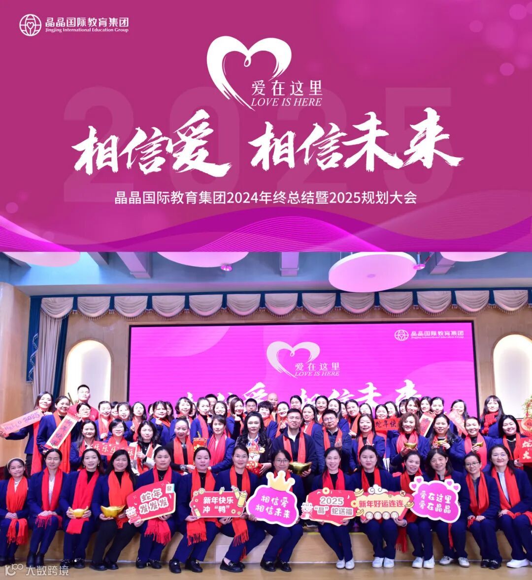 相信爱,相信未来。本次学期总结暨新年规划会活动,不仅是对过去的总结,更是为新学期新征程吹响了嘹亮的号角。晶晶国际教育集团全体教职工必将继续坚守教育初心,全力以赴携手并进,共同谱写晶晶集团高质量发展的新篇章!