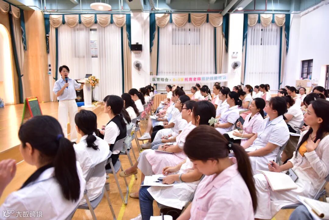 为了给0-3岁孩子带来更专业的照护,促进孩子健康成长,2025年秋季学期初,在深圳海境界幼儿园,晶晶国际教育集团晶兜兜托育组织开展了一场“医育结合,托育教师照护技能培训大会”。来自外部专家、晶晶集团相关部门人员、晶兜兜托育教师和各园保健医生近百人参与活动。